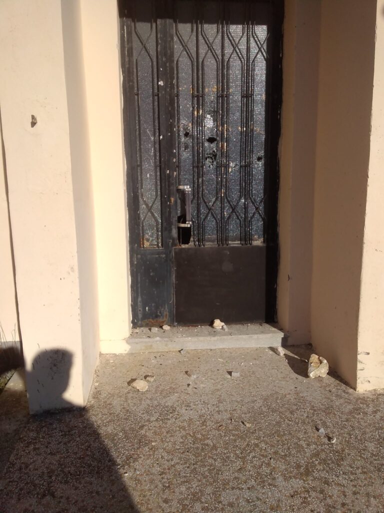 Κατά το παρελθόν έχουμε αντιμετωπίσει περιστατικά βανδαλισμών που έχουν προκληθεί από αγνώστους και αφορούν υλικές ζημιές σε παράθυρα και κεραμίδια μέχρι το τελευταίο συμβάν που έγινε ζημιά στην κεντρική πόρτα του κτηρίου.