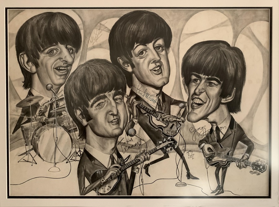 Η καρικατούρα με τους Μπίτλς. Μια ακόμα σημαντική δημιουργία του αείμνηστου Τόνυ Ράφτυ. Είναι η μόνη στον κόσμο που φέρει τις υπογραφές και των τεσσάρων Σκαθαριών.