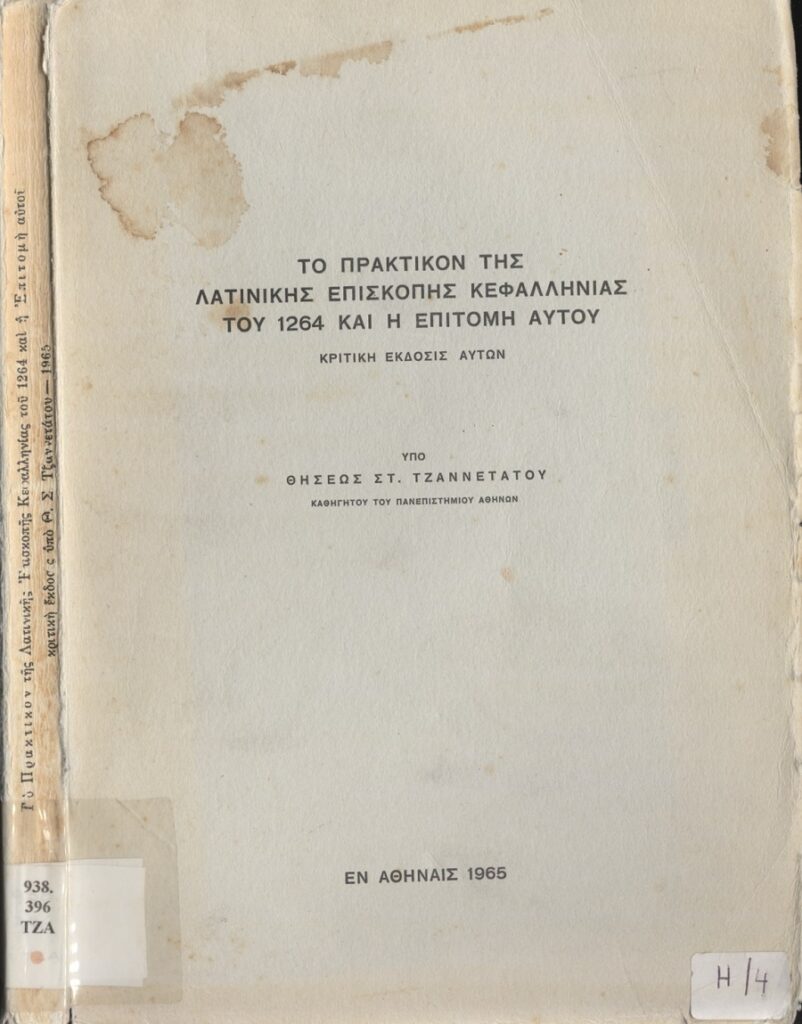 Ο Θ. Τζαννετάτος με παραχωρημένες από τον Δ. Ζακυθηνό τις φωτογραφίες του Πρακτικού προχώρησε το 1965 σε κριτική έκδοση του Πρακτικού και της Επιτομής του, εμπλουτίζοντας καθοριστικά τη μεσαιωνική βιβλιογραφία. Αυτό το βιβλίο με τον τίτλο «Το Πρακτικόν της Λατινικής Επισκοπής Κεφαλληνίας του 1264 και η Επιτομή αυτού. Κριτική έκδοσις αυτών» (εν Αθήναις 1965), παρουσιάζεται εδώ. Είναι από τα βιβλία που πρόσφατα ψηφιοποίησε η Ιακωβάτειος Βιβλιοθήκη και σύντομα θα αναρτηθεί στο διαδίκτυο μαζί με άλλο πολύτιμο βιβλιακό, αρχειακό και μουσειακό υλικό.