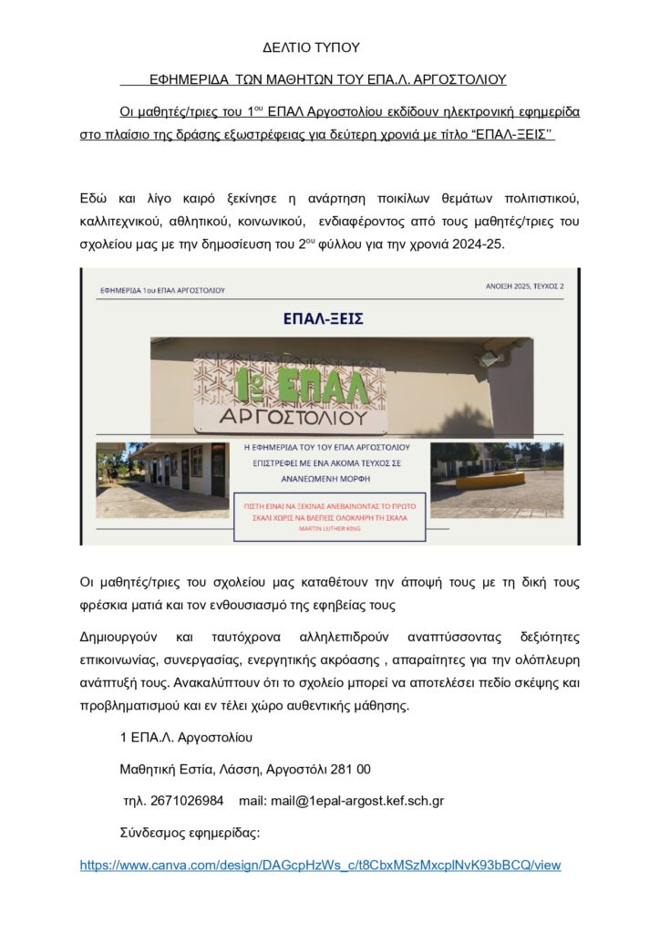 Εφημερίδα των μαθητών του ΕΠΑΛ Αργοστολίου