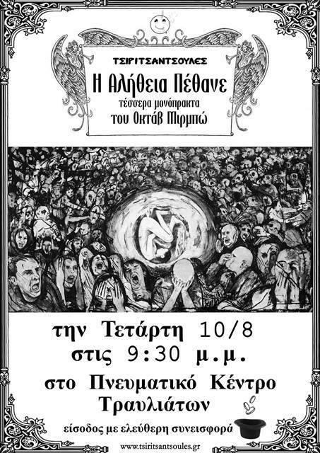 «Η Αλήθεια Πέθανε» από την θεατρική ομάδα Τσιριτσάντσουλες
