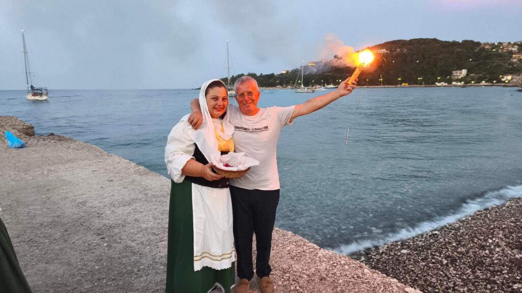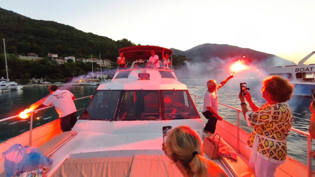 Η αρχή της μουσικής περατζάδας έγινε στο Λιμάνι του Πόρου μας και στη συνέχεια όλοι μας επιβιβαστήκαμε στο Ημερόπλοιο της οικογένειας Γιάννη και Ηλία Βαλσαμή με το οποίο πραγματοποιήθηκε μια αυτοσχέδια βαρκαρόλα από τα κεφάτα μέλη του “Πρόνησου.” Μαζί τους σ’ όλη τη διαδρομή υπήρξε και ο συνδιοργάνωτης της εκδήλωσης, εκ μέρους του Δήμου Αργοστολίου, Πρόεδρος του Πόρου Κεφαλονιάς Οδυσσέας Γαλιατσάτος ο οποίος άναψε μαζί με άλλους ναυτικές φωτοβολίδες εντυπωσιάζοντας τους παρευρισκόμενους που μαζεύτηκαν στο λιμανάκι της Κεντρικής Πλατείας μας όπου πραγματοποιήθηκε η αποβίβαση της ομάδας για να συνεχίσει το θεάρεστο πολιτιστικό του έργο στο υπόλοιπο χωριό μας!