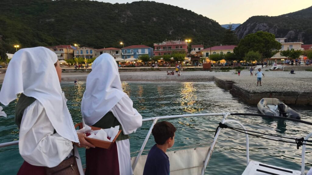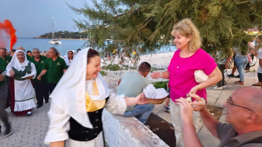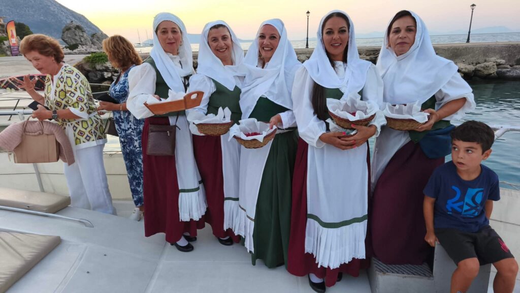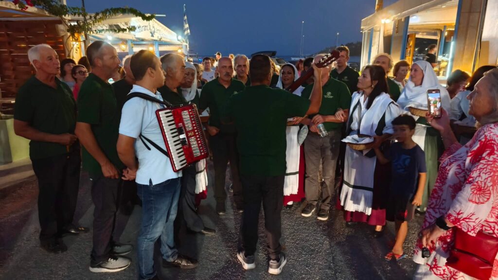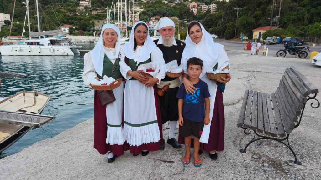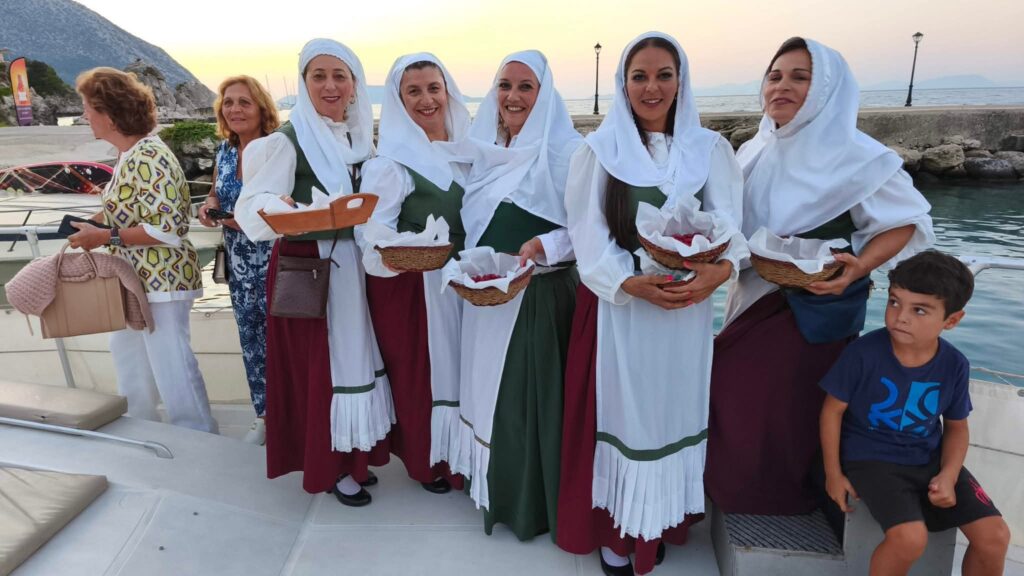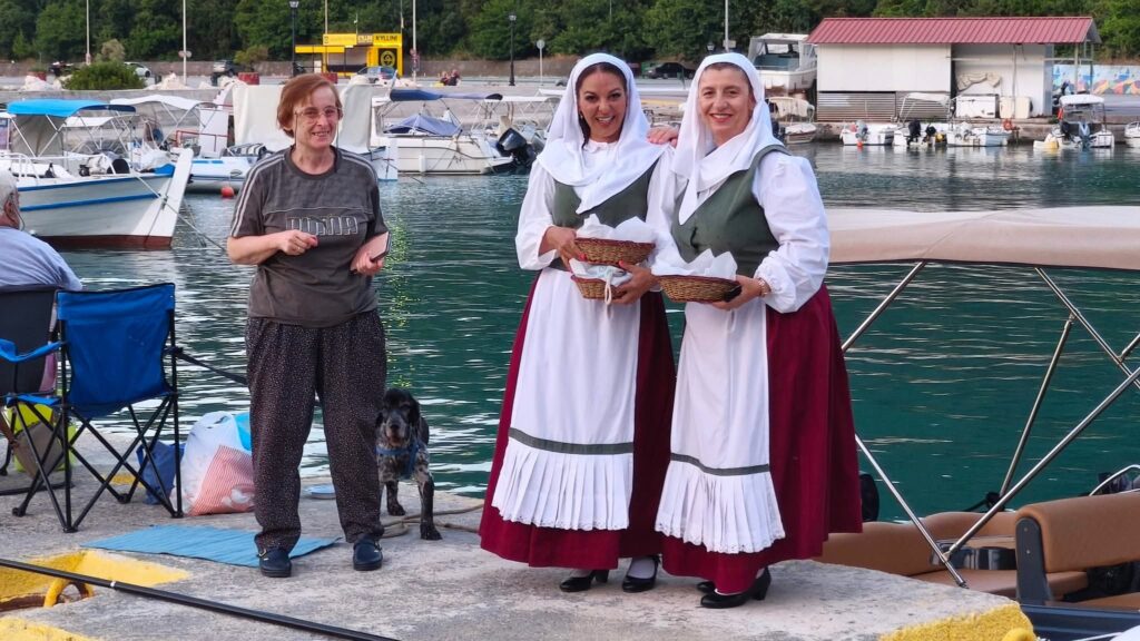 Μαζί με την πολυμελή Ανδρική Χορωδία Δήμου Ληξουρίου που μας τίμησε με τις εξαιρετικές επιδόσεις τους στο τραγούδι και τη μουσική τους ταξιδεύοντας από το Ληξούρι βρέθηκαν και τα μέλη του Πολιτιστικού Συλλόγου του Πόρου Κεφαλονιάς “Ο Πρόνησος,” με τη δραστήρια συνδιοργανώτρια της εκδήλωσης και Προέδρου του συλλόγου μας Ασπασία Σεριάτου, οι οποίοι ντυμένοι υπερήφανα με Κεφαλονίτικες φορεσιές μοίρασαν με χαμόγελο παντού όπου πήγαν μάντολες στον κόσμο!