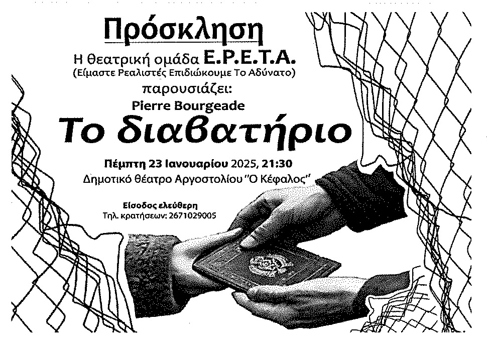 Η Θεατρική Ομάδα ΕΡΕΤΑ παρουσιάζει το έργο “Το Διαβατήριο” στο Δημοτικό Θέατρο “Ο Κέφαλος”