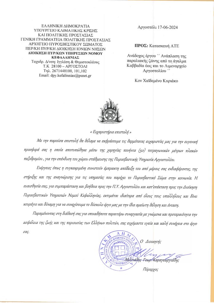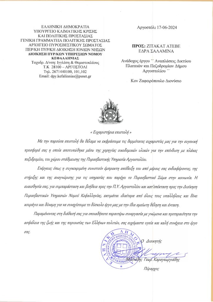 Η Πυροσβεστική Υπηρεσία ευχαριστεί