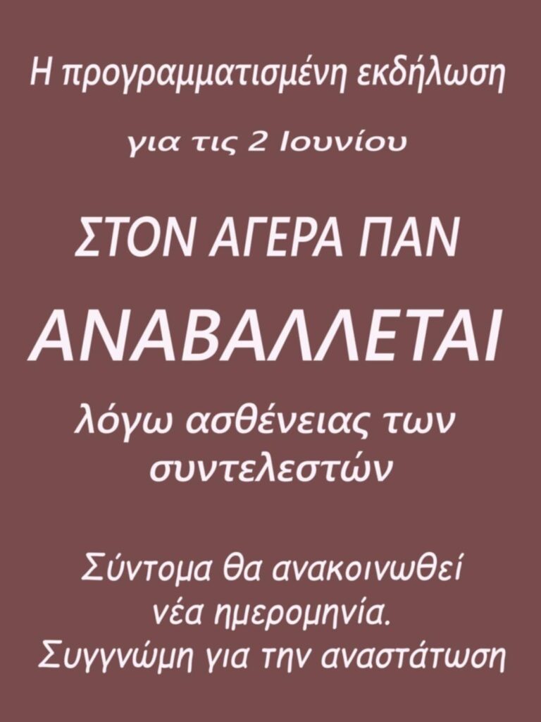 Αναβάλλεται η θεατρική εκδήλωση “στον Αγέρα Παν”