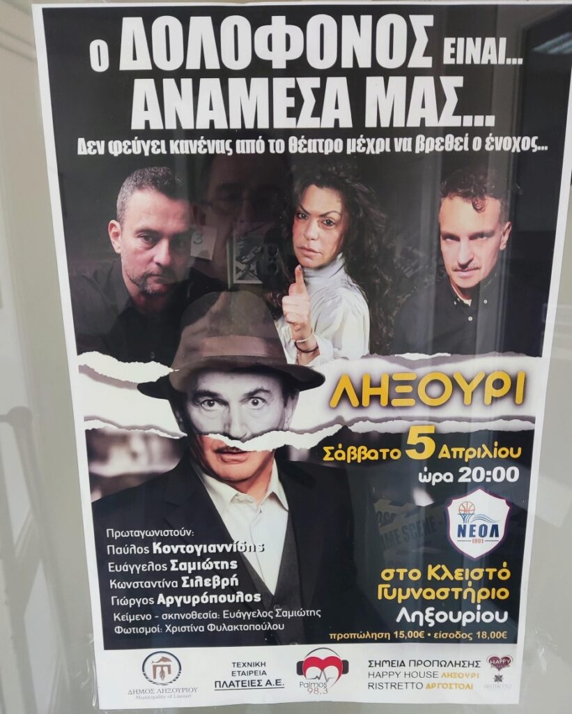 Ο ΔΟΛΟΦΟΝΟΣ ΕΙΝΑΙ… ΑΝΑΜΕΣΑ ΜΑΣ… ΚΑΙ ΕΡΧΕΤΑΙ ΣΤΟ ΛΗΞΟΥΡΙ ΤΟ ΣΑΒΒΑΤΟ 05/04/25 ΩΡΑ 20:00 ΣΤΟ ΚΛΕΙΣΤΟ ΓΥΜΝΑΣΤΗΡΙΟ ΓΕΡΑΣΙΜΟΣ ΑΡΣΕΝΗΣ