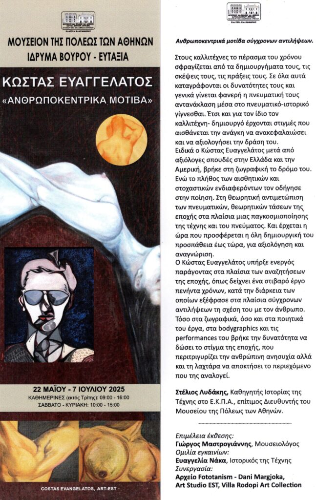Βλ. Φωτογραφίες εγκαινίων έκθεσης “Ανθρωποκεντρικά Μοτίβα” (Διάρκεια μέχρι 7 Ιουλίου 2025)