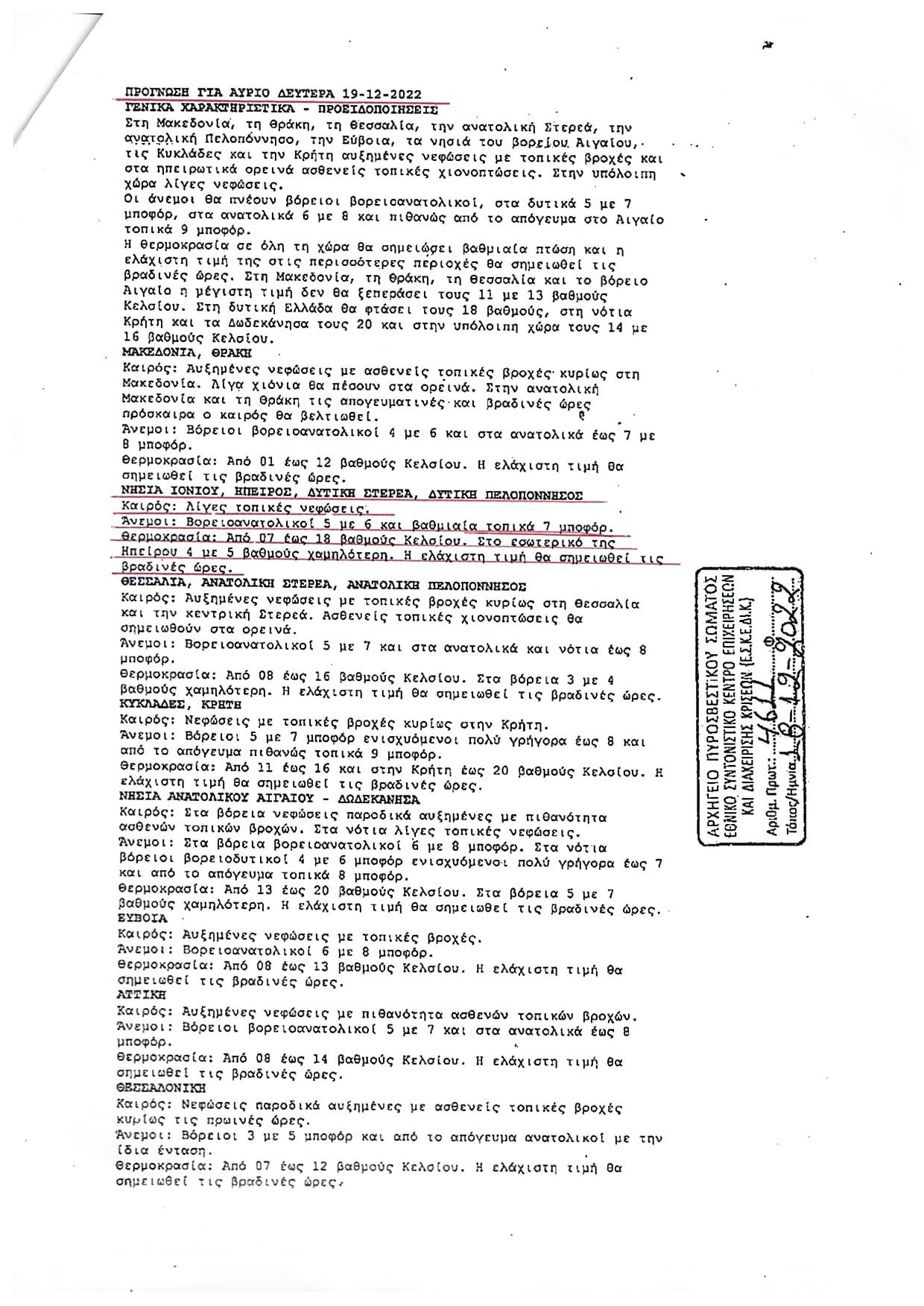 Καιρός Αύριο Δευτέρα 19 Δεκεμβρίου λίγες τοπικές νεφώσεις