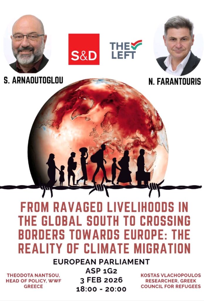 Όπως τόνισαν οι δύο ευρωβουλευτές «ακόμη και εντός της Ευρωπαϊκής Ένωσης έχουμε κλιματικούς πρόσφυγες από κράτη μέλη και οι πρώτοι δυστυχώς έρχονται απ’ την Ελλάδα και τη Θεσσαλία μετά τον Daniel».