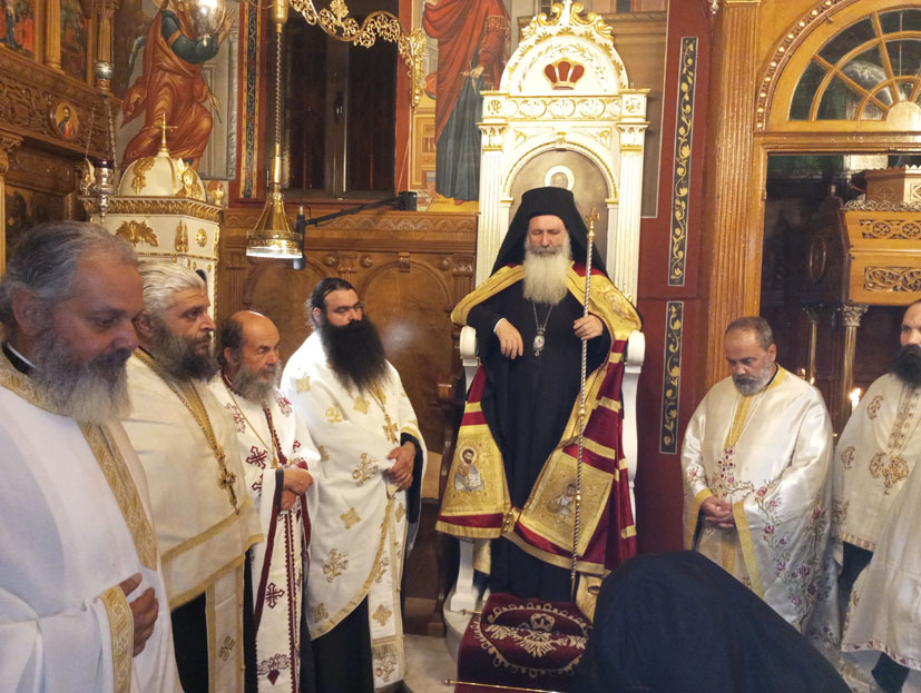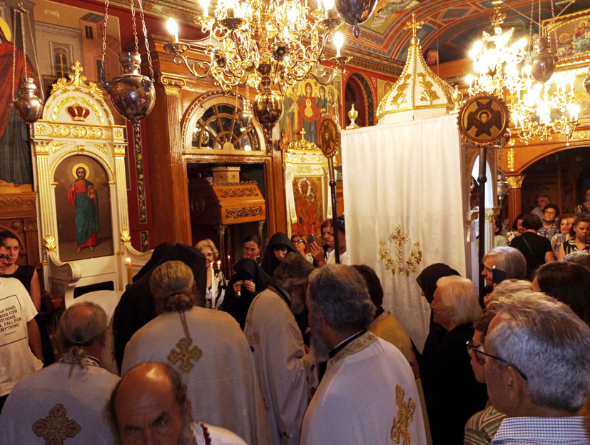 Οι παρόντες αρχιμανδρίτες και ιερείς του νησιού μας με προεξάρχων τον μητροπολίτη μας, κον Δημήτριον, μέσα από τους ψαλτικούς ήχους της προσευχής, πραγματοποίησαν ευλαβικά και κατανυκτικά, την κουρά εις το μοναχικό σχήμα, της νέας μοναχής Ακυλίνας.