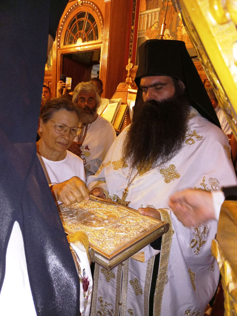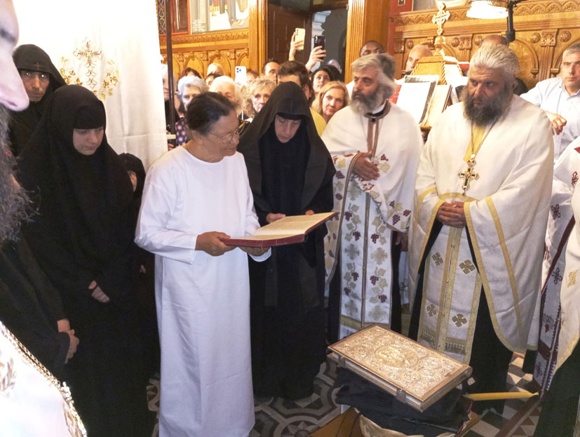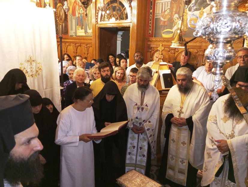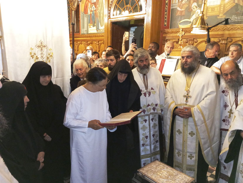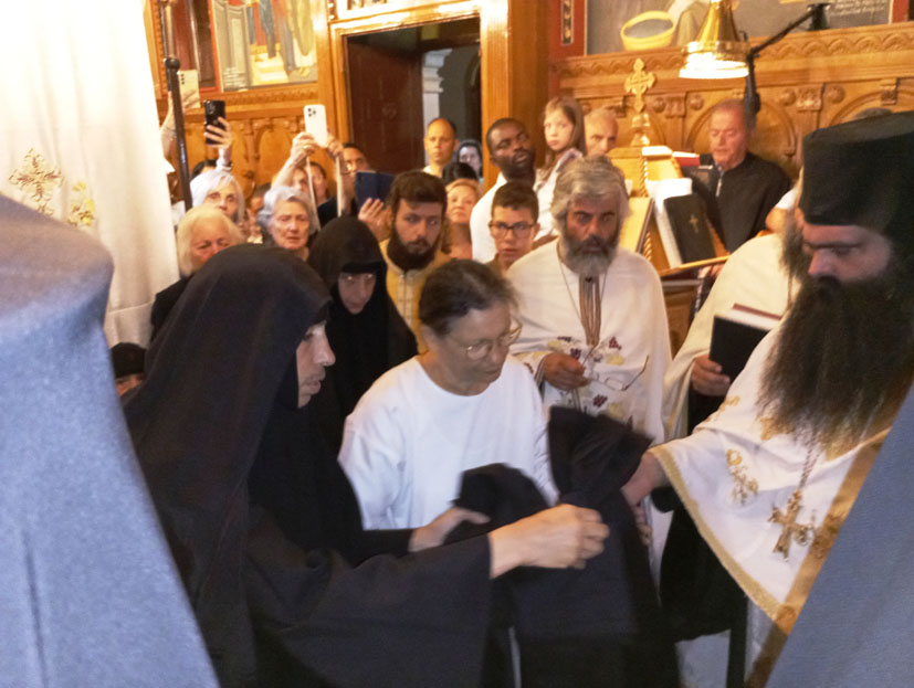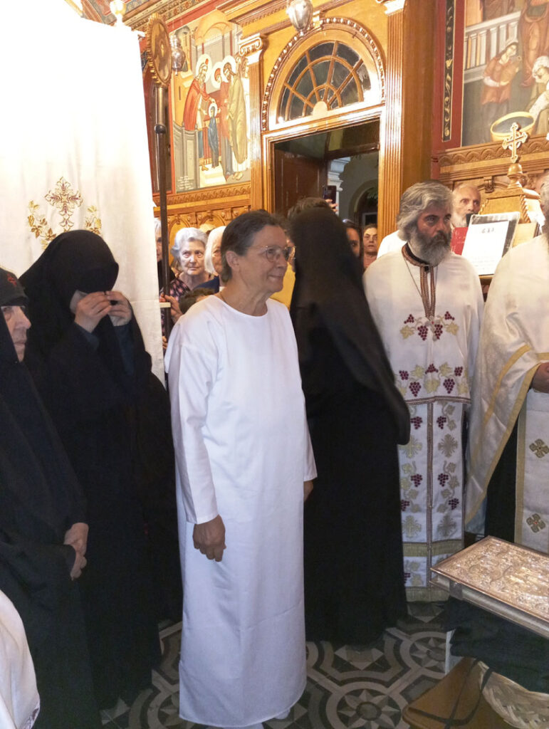 Η όλη ατμόσφαιρα ήταν συγκινητική τόσο από τους πιστούς που σιωπηλά προσεύχονταν για την αξιοσύνη της νέας μοναχής του Κορωνάτου, όσο και για την ευλαβική ταπεινοφροσύνη που η ίδια μας μετέδωσε, νιώθοντας βαθιά μέσα της, τον θείο σκοπό, του να υπηρετήσει, με εσωτερική γαλήνη, τον Ήταν, τον Είναι και τον Ερχόμενον Ιησού Χριστόν.