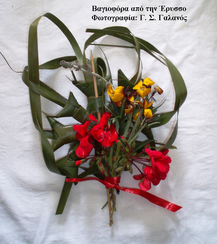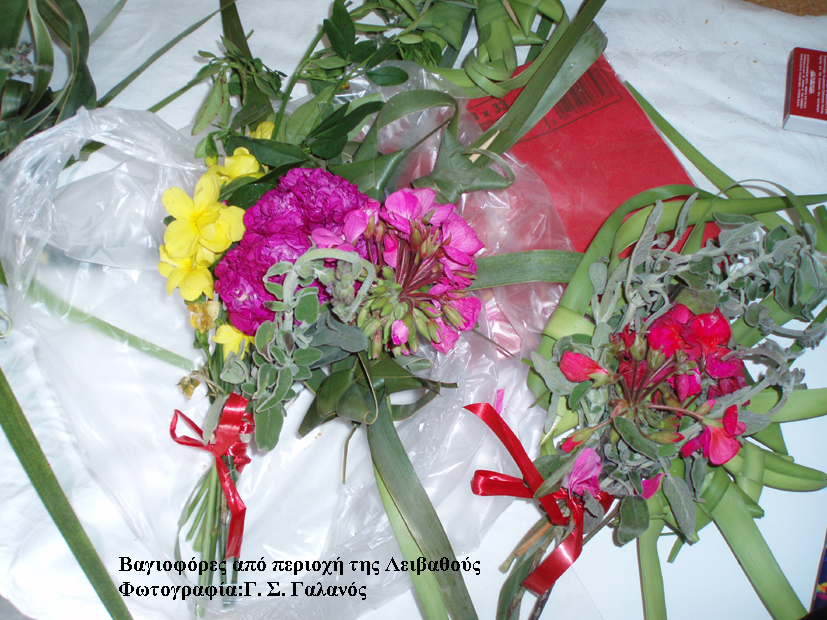 Σε πολλά μέρη τα βάγια είναι δάφνες, πανάρχαιο λατρευτικό φυτό και αλλού ιτιά και μυρτιά ή ακόμη και άλλα νικητήρια φυτά!(1).