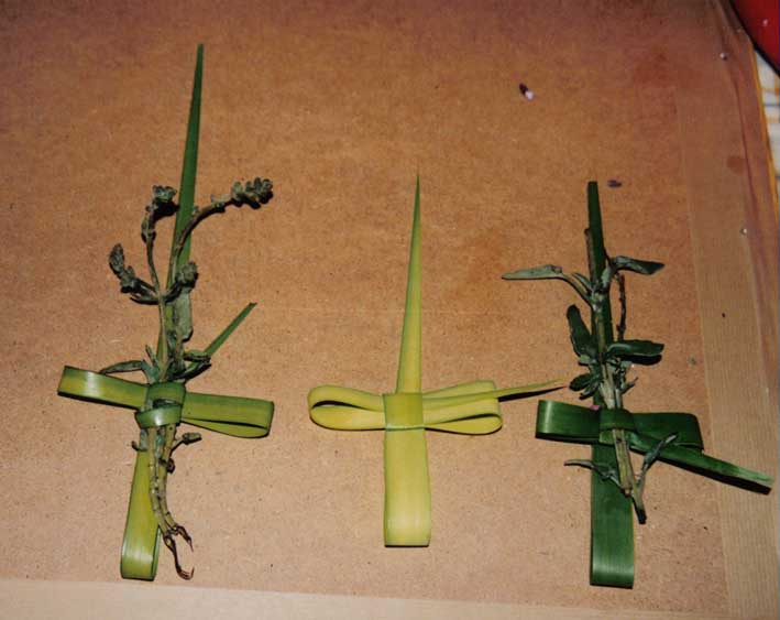 Τα βάγια που ήταν να δοθούν στην εκκλησία ήταν απλούστερα, όμως και σε αυτά ήταν απαραίτητος ο κλάδος της ελιάς και του φοίνικα. Έβαζαν μαζί και δεντρολίβανο, βιολέτες, βάλσαμο, αλιφασκιά και όλα αυτά τα έδεναν με μια λωρίδα φοίνικα στο κάτω μέρος.