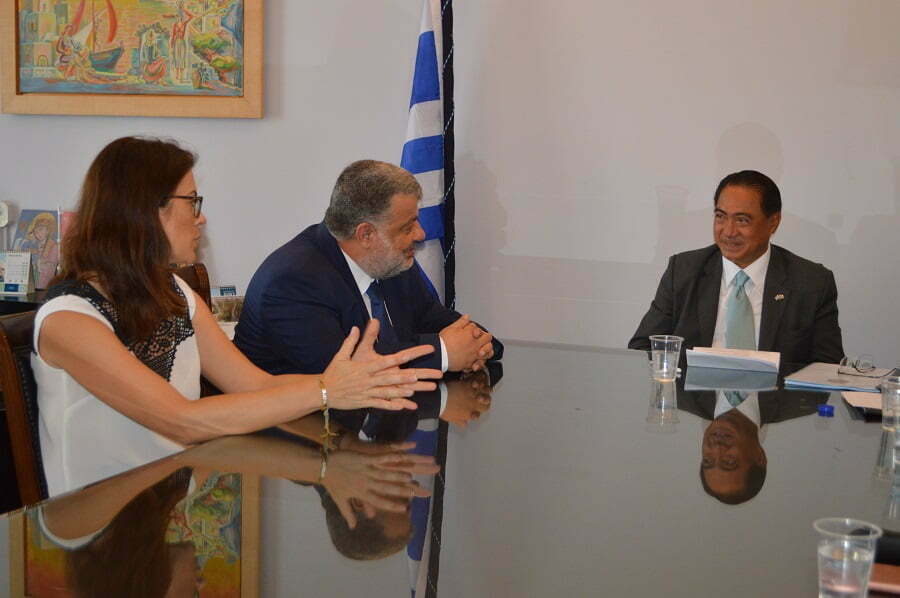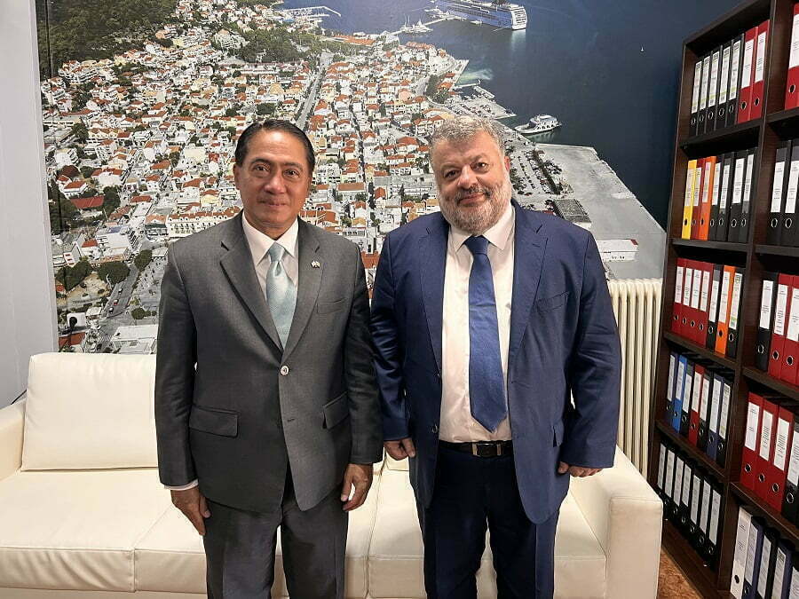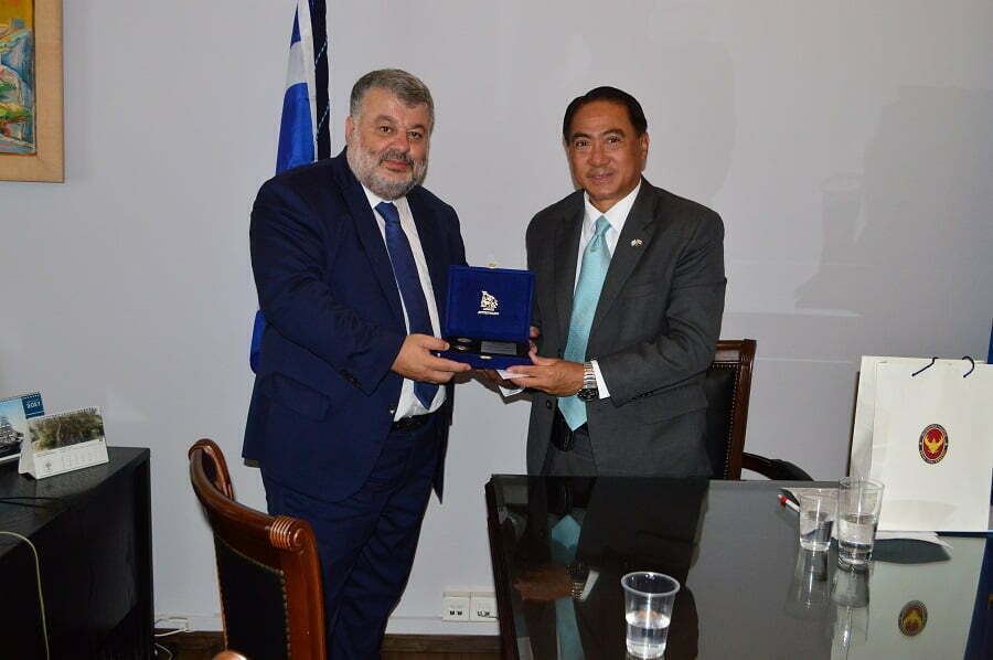 Τον Πρέσβη της Ταϊλάνδης στην Ελλάδα κ. Attakarn Wongchanamas και συνεργάτες του, δέχθηκε το πρωί του Σαββάτου 2 Ιουλίου 2022 στο Δημαρχείο, ο Δήμαρχος Αργοστολίου Θεόφιλος Μιχαλάτος. Στη συνάντηση μεταξύ άλλων συμμετείχαν η κα. Γερασιμούλα Γεράκη , η κα. Μαρίνα Βεργωτή Υπεύθυνη Δημοσίων Σχέσεων σε θέματα τουρισμού στον Δήμο Αργοστολίου, ο κ. Διονύσης Φωκάς σύμβουλος του Δήμου Αργοστολίου σε θέματα πολιτισμού και ο κ. Παναγής Βεργωτής . Κατά τη διάρκεια της συνάντησης εξετάστηκαν οι δυνατότητες ανάπτυξης τουριστικών και εμπορικών σχέσεων μεταξύ Ταϊλάνδης και Κεφαλονιάς.