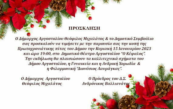 Κόβει την πίτα του ο Δήμος Αργοστολίου την Κυριακή 15 Ιανουαρίου στον Κέφαλο