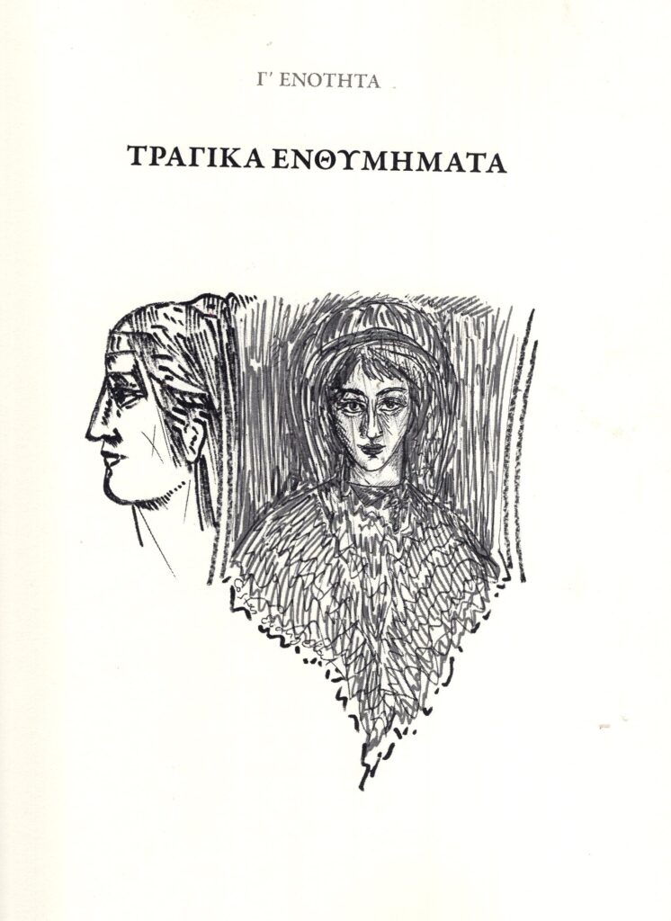 Στα έξι σχετικά πολύστιχα ποιήματα των «Τραγικών ενθυμημάτων» ο ποιητής φεύγει από τα προσωπικά βιώματα και στρέφεται σε άλλα. Διατυπώνει τη θέση του σε σύγχρονα, ή παλιά κοινωνικά θέματα αλλά και σε σύγχρονα ιστορικοπολιτιστικά. Στο ποίημα «Έκτακτη είδηση» δίνει λύση στο θέμα των προσφύγων και προκαλεί ειλικρινά ευφρόσυνη διάθεση.