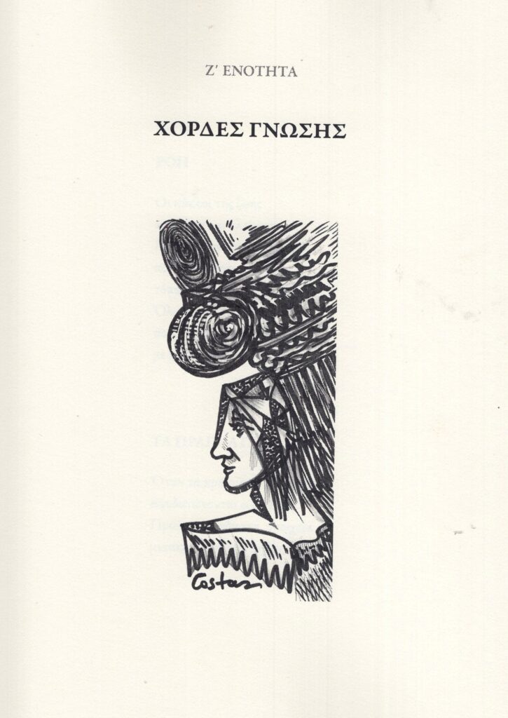 Η συλλογή ολοκληρώνεται με την έβδομη επιλογική ενότητα «Χορδές γνώσης». Η περιδιάβαση των στίχων φωτίζει περισσότερο τη ζωή του ποιητή. Επισημαίνονται αυτοαναφορές, αποτιμάται το καθετί και αναδεικνύεται η ματαιότητα των επιλογών και των πραγμάτων που αποτέλεσαν στόχο ζωής. Κατά τον ποιητή, ο κύκλος της ζωής ανοίγει και νομοτελειακά κλείνει. Στο παρόν, πάντα άγνωστο, ο άνθρωπος ενοικεί απλά. Τελικά, αιφνίδια, αποσυνδέεται από τα φορτία του κόσμου και σβήνει «δεδομένα και επαφές». Αυτοί που υπήρξαν έφυγαν, ωσάν «βυζαντική ακολουθία».