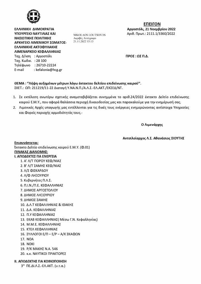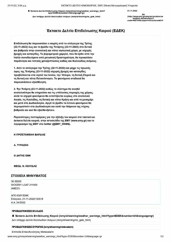 Λήψη αυξημένων μέτρων λόγω έκτακτου δελτίου επιδείνωσης καιρού
