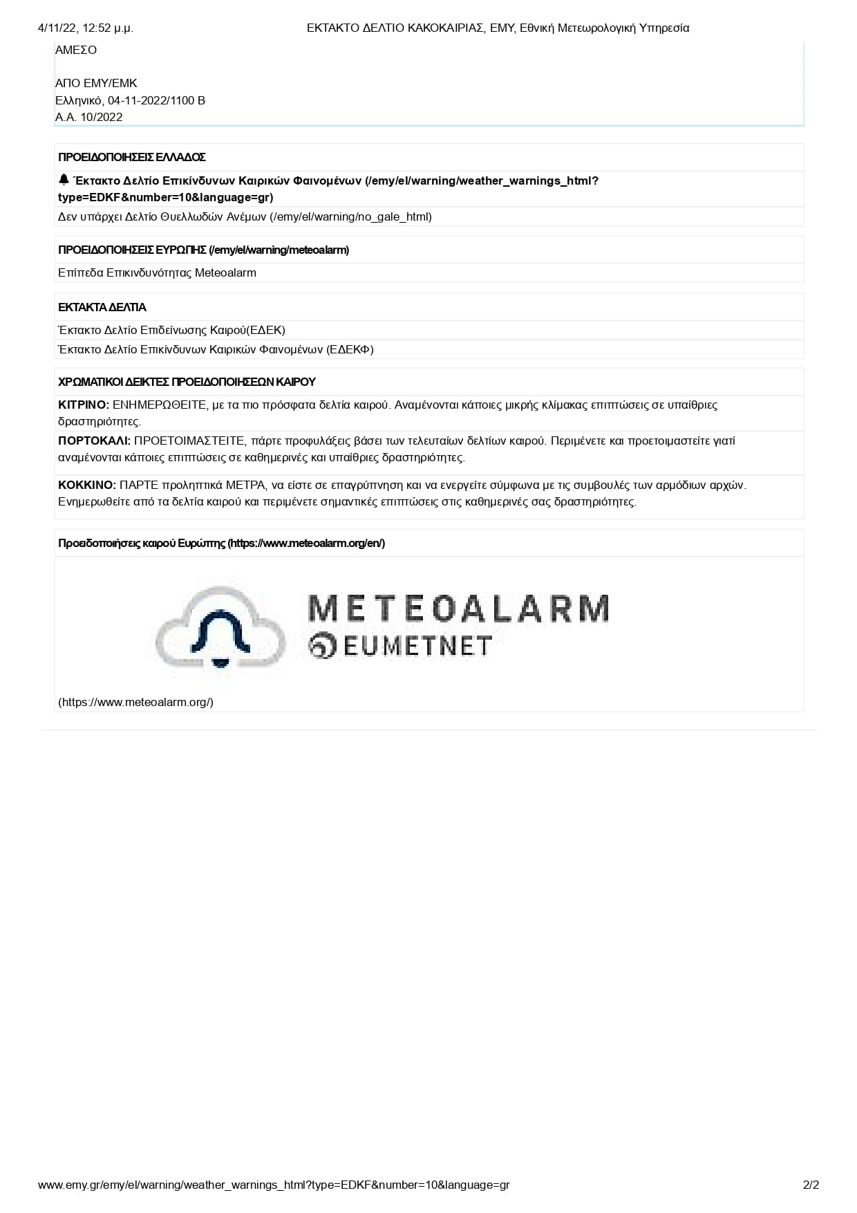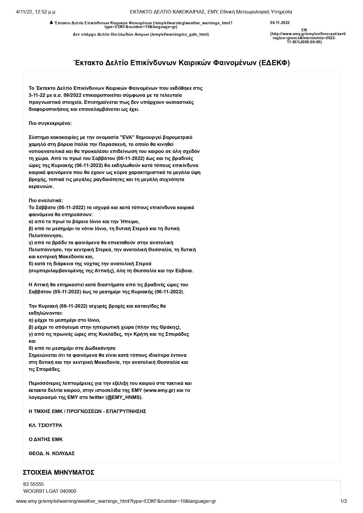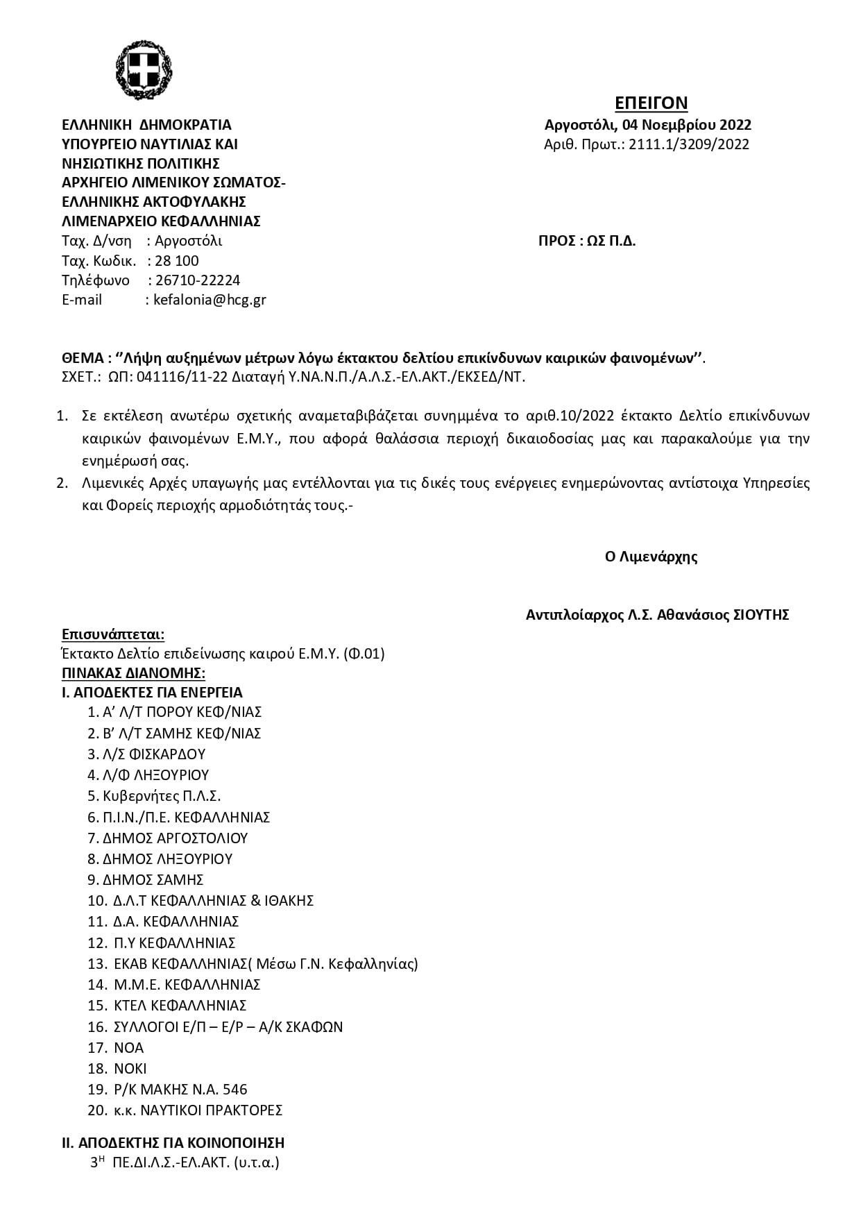 Λήψη αυξημένων μέτρων λόγω έκτακτου δελτίου επικίνδυνων καιρικών φαινομένων