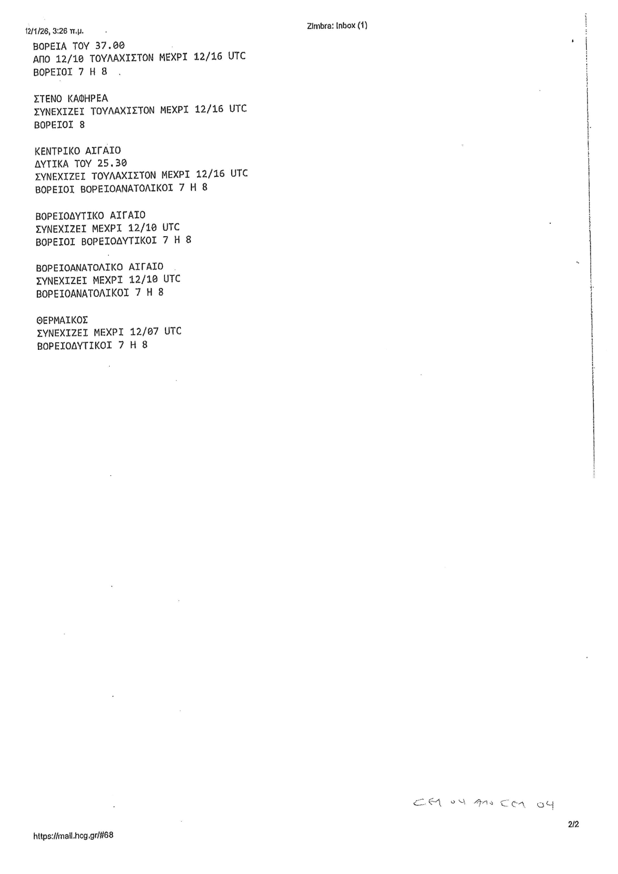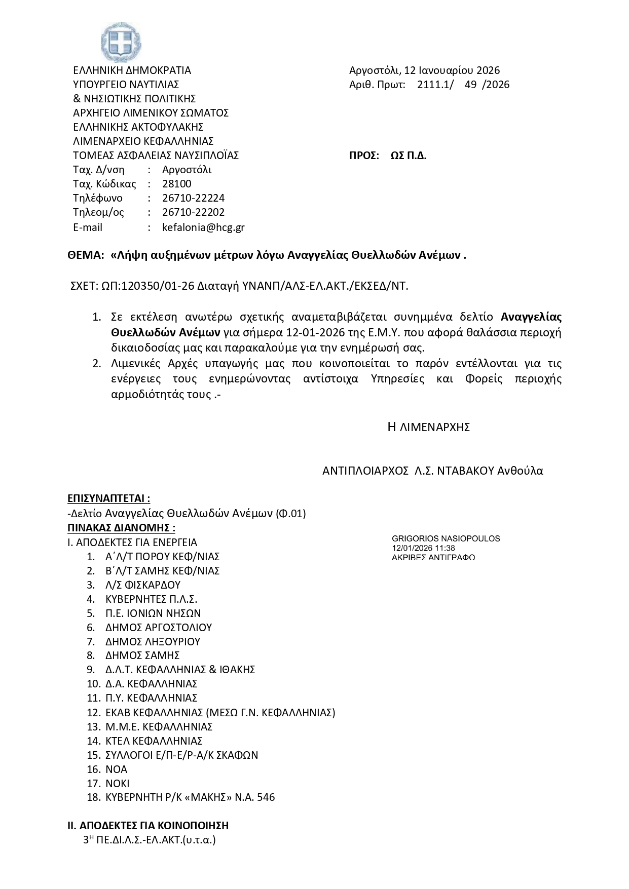 Λήψη αυξημένων μέτρων λόγω Αναγγελίας Θυελλωδών Ανέμων