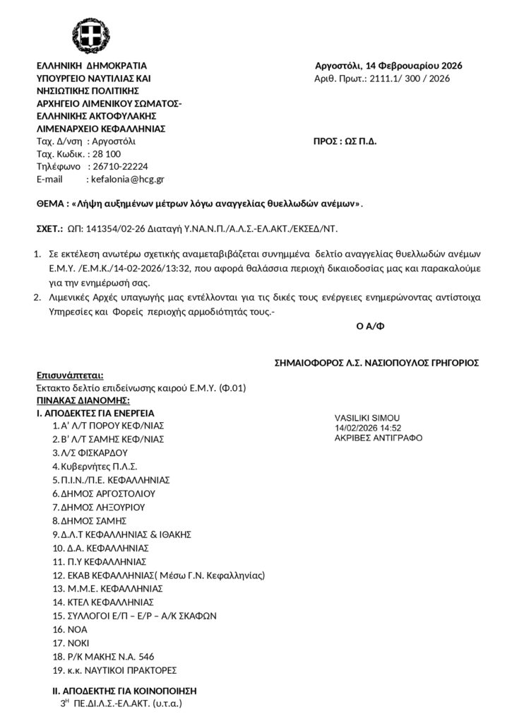Λήψη αυξημένων μέτρων λόγω αναγγελίας θυελλωδών ανέμων