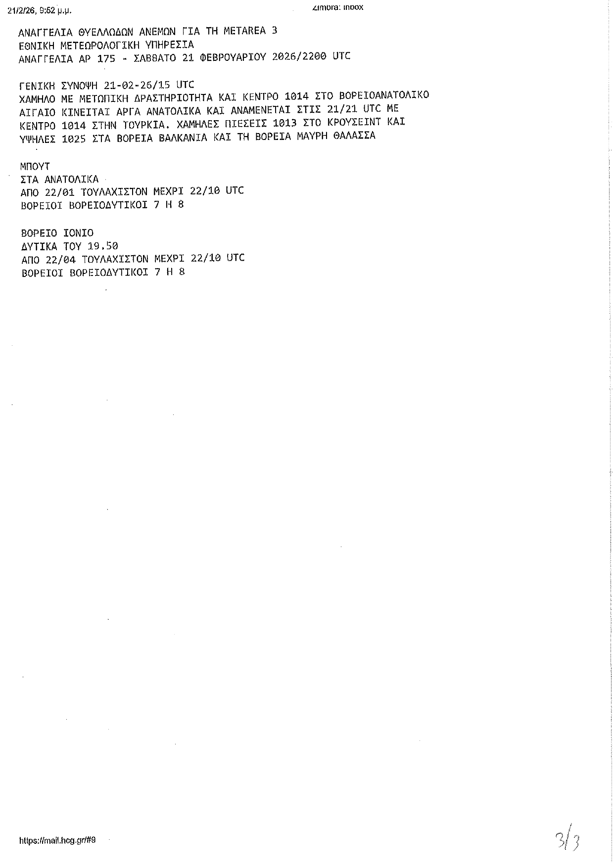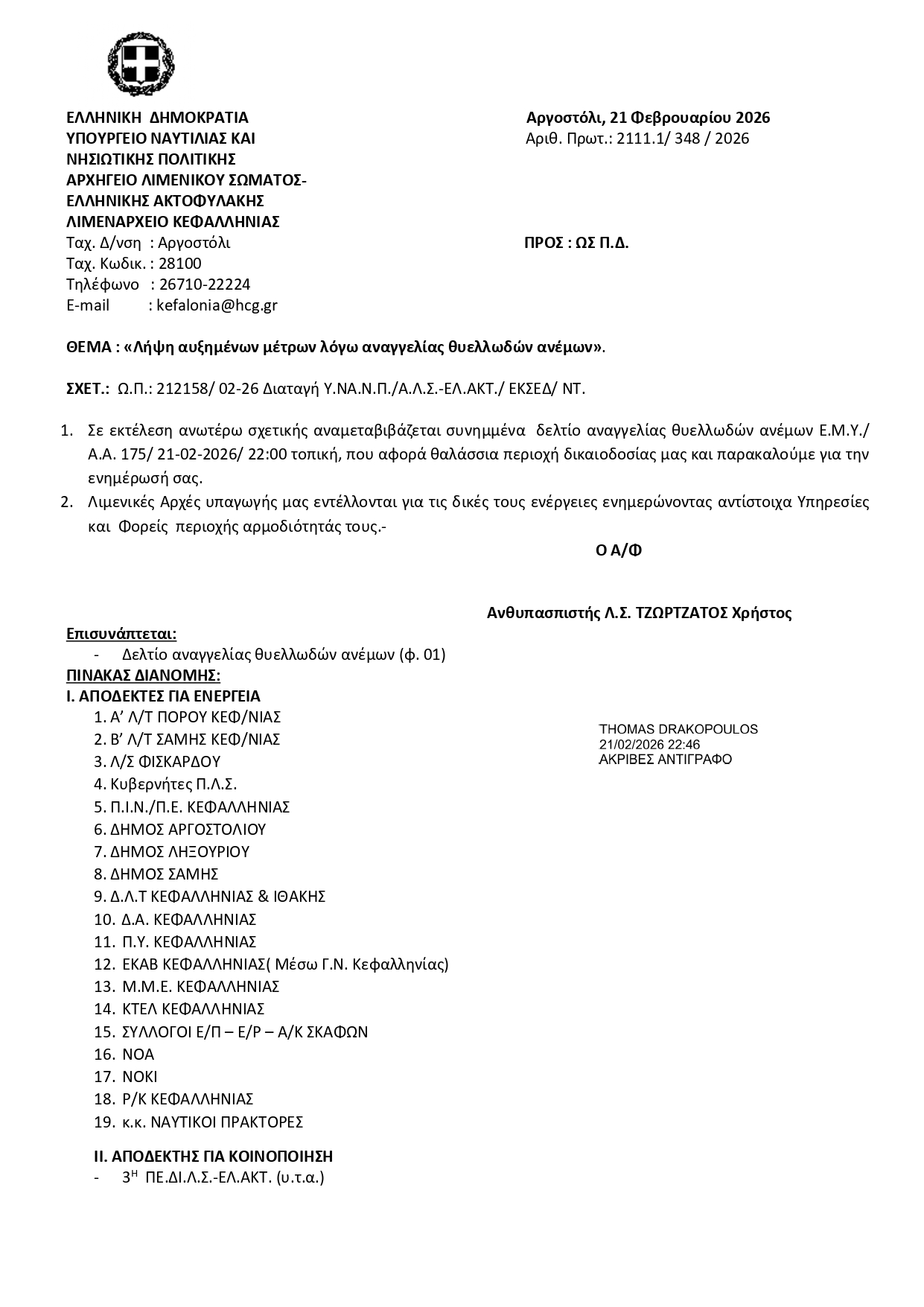 Λήψη αυξημένων μέτρων λόγω αναγγελίας θυελλωδών ανέμων