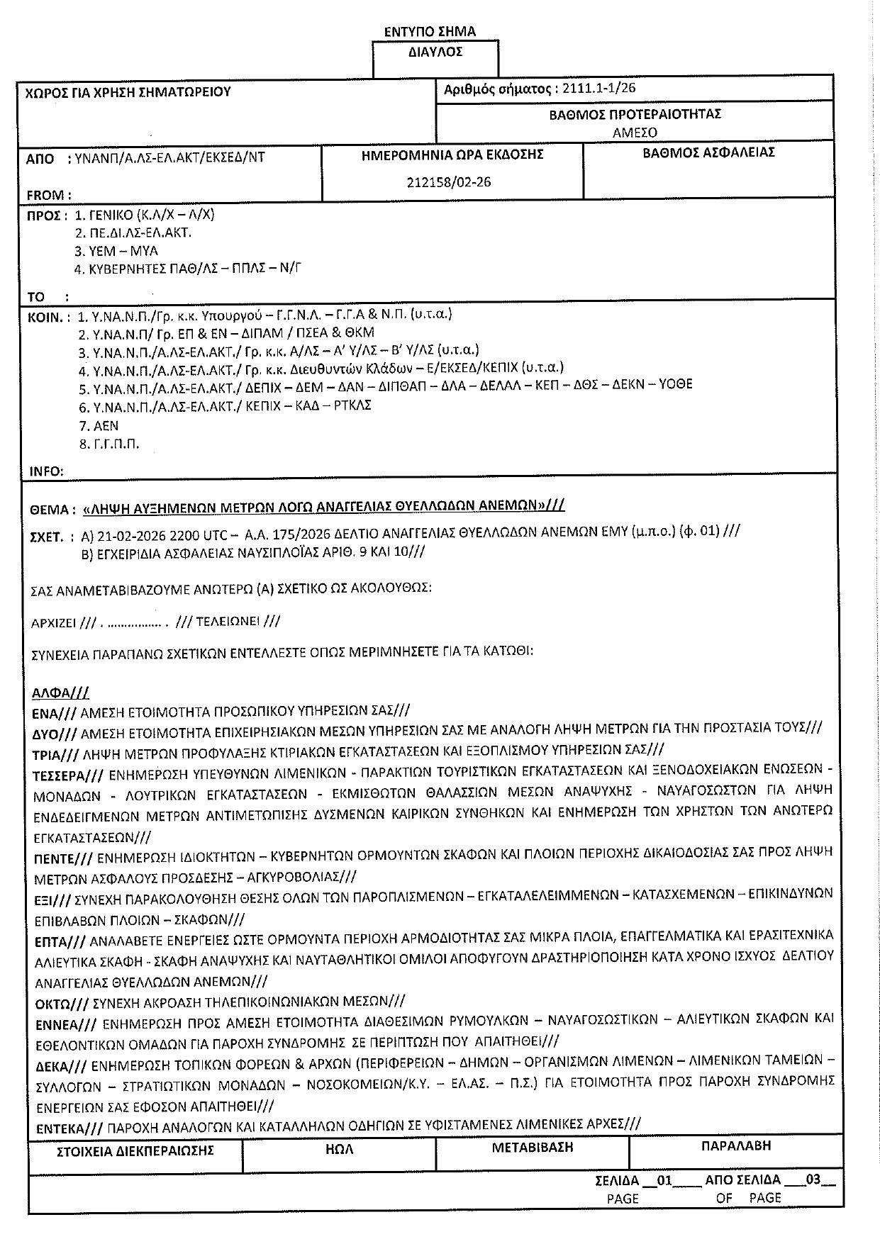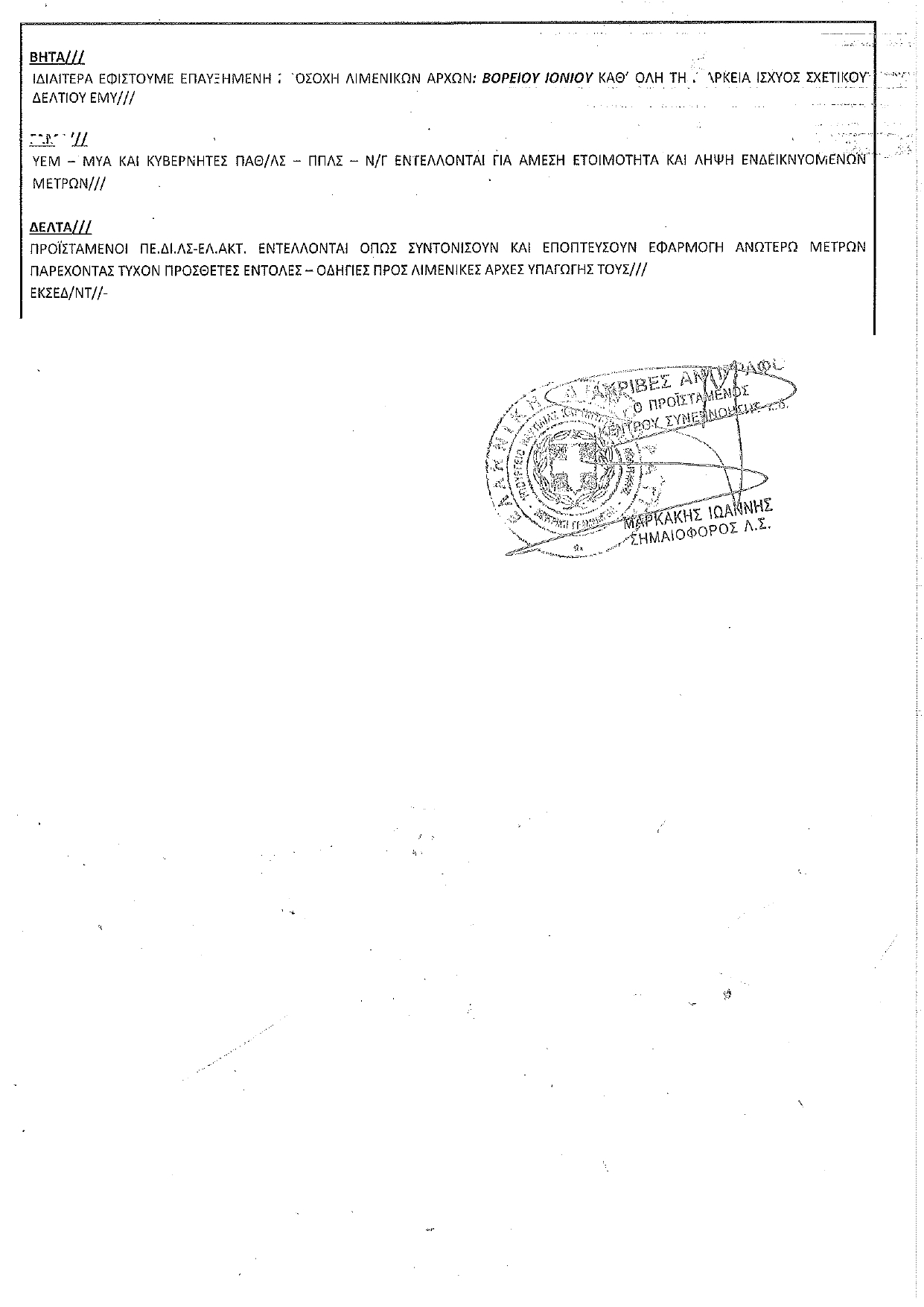 Λήψη αυξημένων μέτρων λόγω αναγγελίας θυελλωδών ανέμων