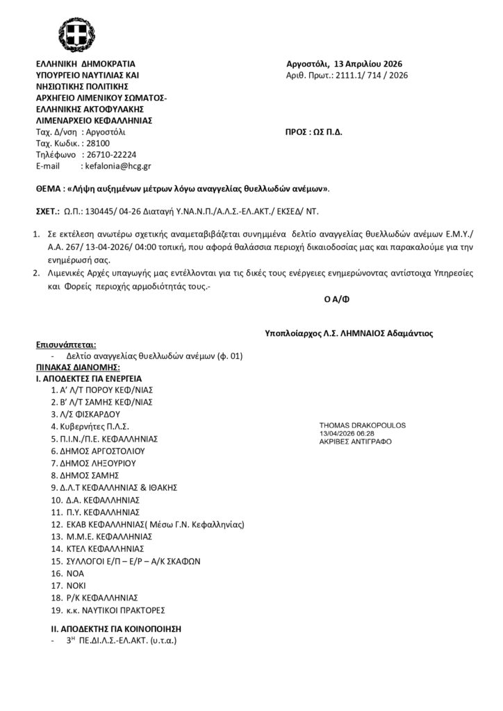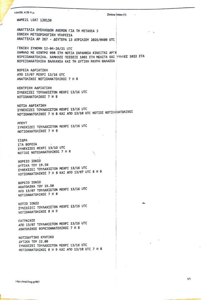 Λήψη αυξημένων μέτρων λόγω αναγγελίας θυελλωδών ανέμων