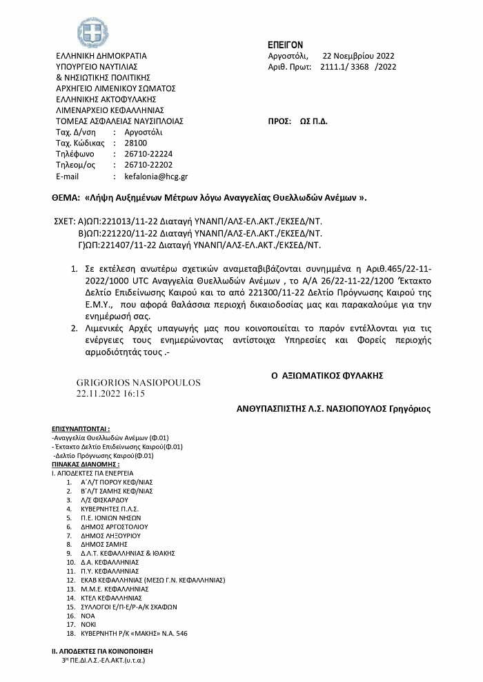 Λήψη αυξημένων μέτρων λόγω αναγγελίας θυελλωδών ανέμων