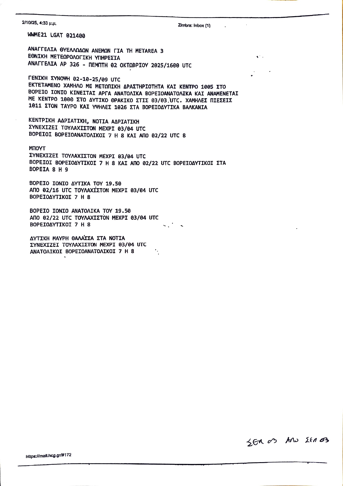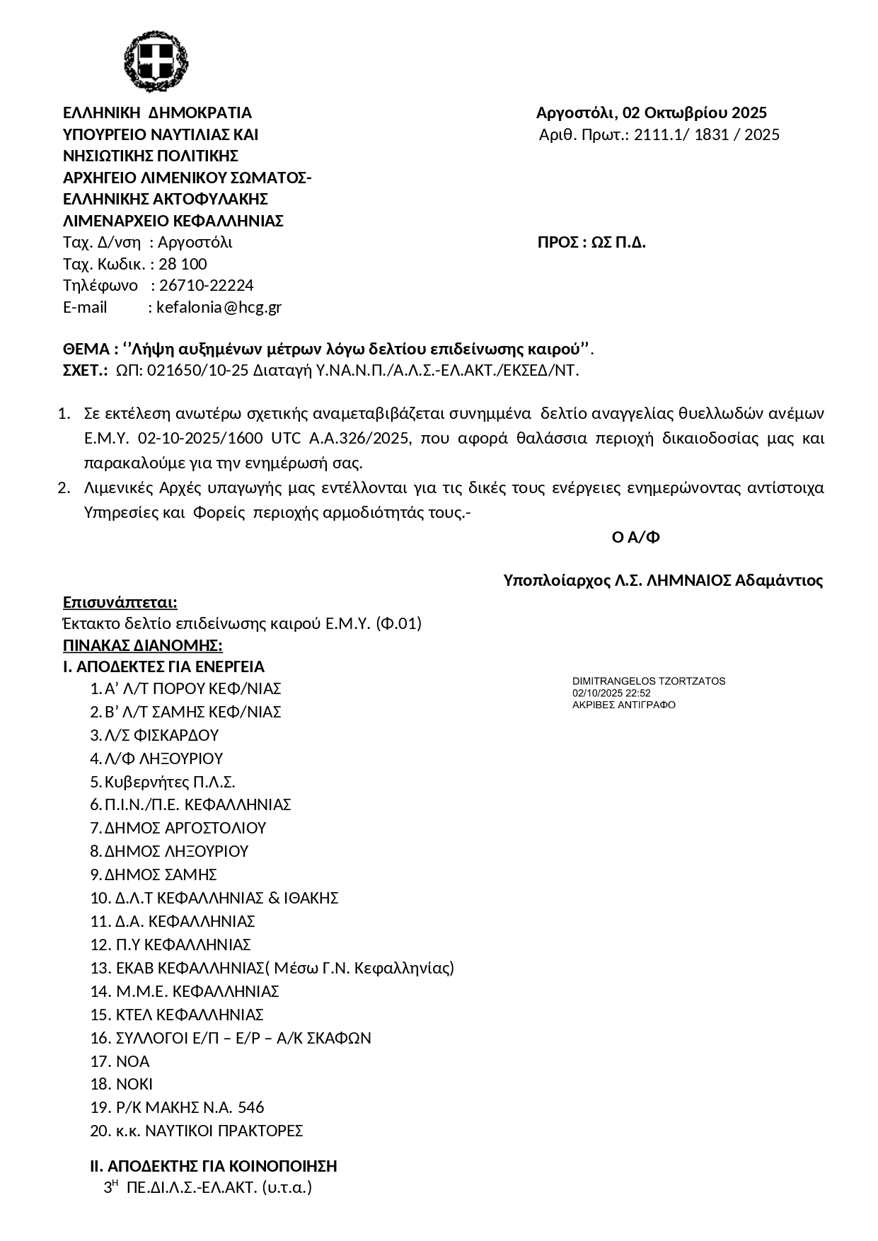 Λήψη αυξημένων μέτρων λόγω δελτίου επιδείνωσης καιρού