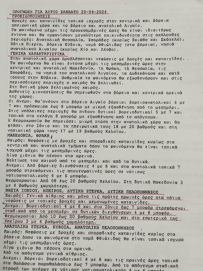 Η πρόγνωση του καιρού για σήμερα Σάββατο 20 Απριλίου