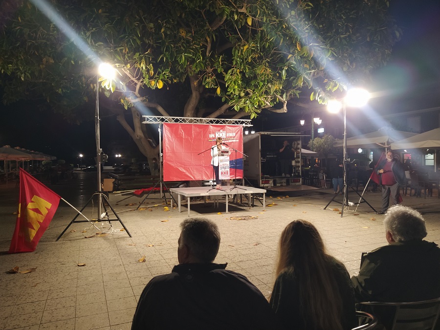 Στην κεντρική πλατεία της πόλης, το βράδυ του Σαββάτου, ομιλίες πραγματοποίησαν επίσης, οι υποψήφιες ευρωβουλευτές του ΚΚΕ, Κατερίνα Δεμέτη και Βικτωρία Κούτση, με εργατικό, λαϊκό κόσμο να δίνει το «παρών» στο χώρο παρά και τη βροχή.