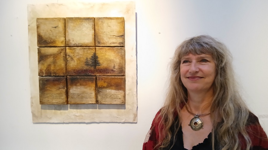 ΣΤΙΣ ΦΩΤΟΓΡΑΦΙΕΣ η Karen Davies μπροστά από ένα έργο της καθώς και μία άλλη δημιουργία της.