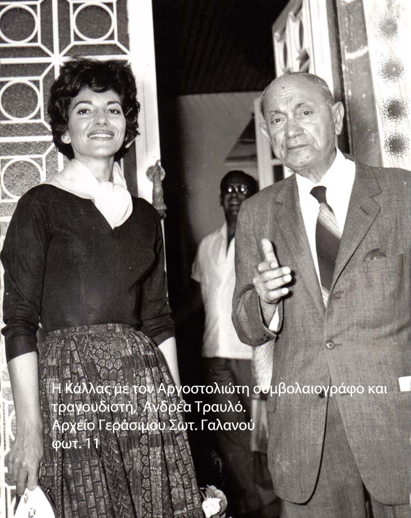 Στο άκουσμα για την παρουσία της Κάλλας και του Ωνάση στην Κεφαλλονιά αναστάτωσε καλλιτεχνικά και τον ερασιτέχνη τενόρο του Αργοστολίου Ανδρέα Δ. Τραυλό-Τζαννετάτο, ο οποίος έσπευσε σύντομα και εγκάρδια να συναντήση τη διάσημη υψίφωνο. Επίσης η Κάλλας γνώρισε και άλλα μέλη της οικογένειας Βεργωτή και όλη η παραμονή της ήταν υπέροχη. Φυσικά και άλλοι φιλόμουσοι και καλλιτέχνες του Αργοστολίου όπως ο Σπύρος ο Φωκάς έτρεξαν για να δουν τους υψηλούς επισκέπτες από κοντά και να συζητήσουν με την Κάλλας.