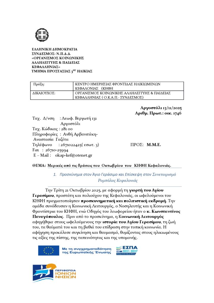Μερικές δράσεις του ΚΗΦΗ Κεφαλονιάς για τον Οκτώβριο