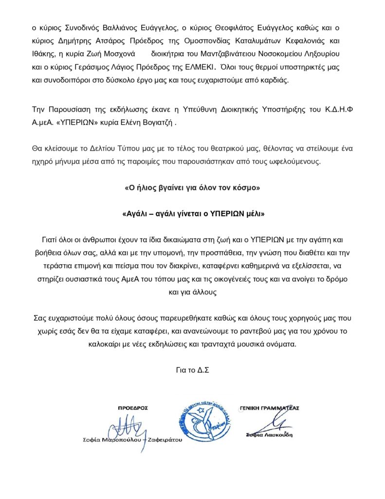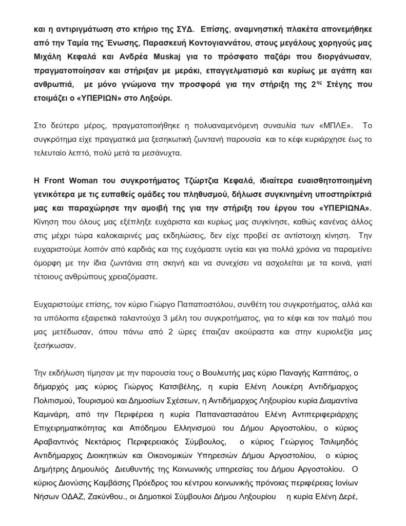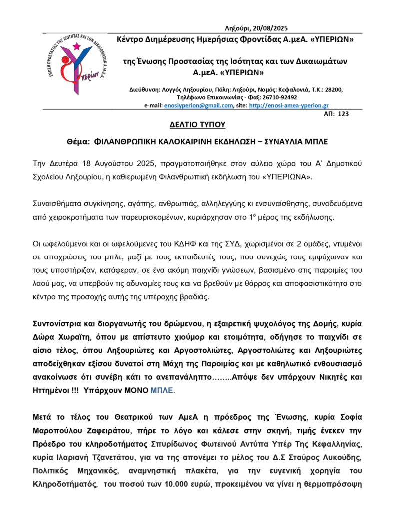 Με επιτυχία η φιλανθρωπική καλοκαιρινή εκδήλωση του Υπερίωνα