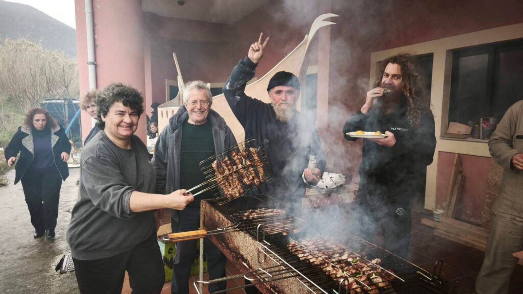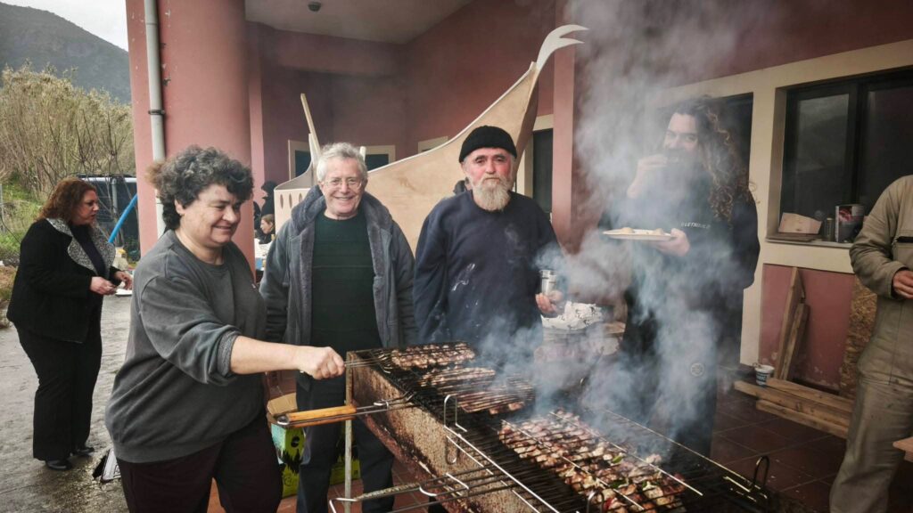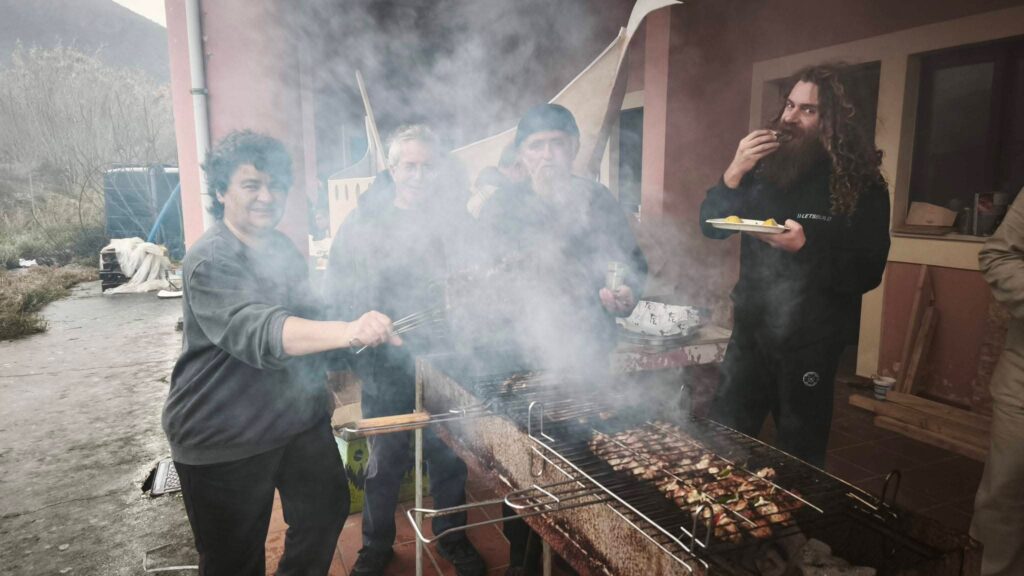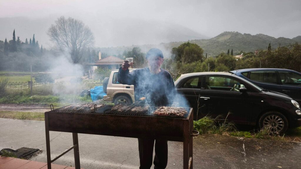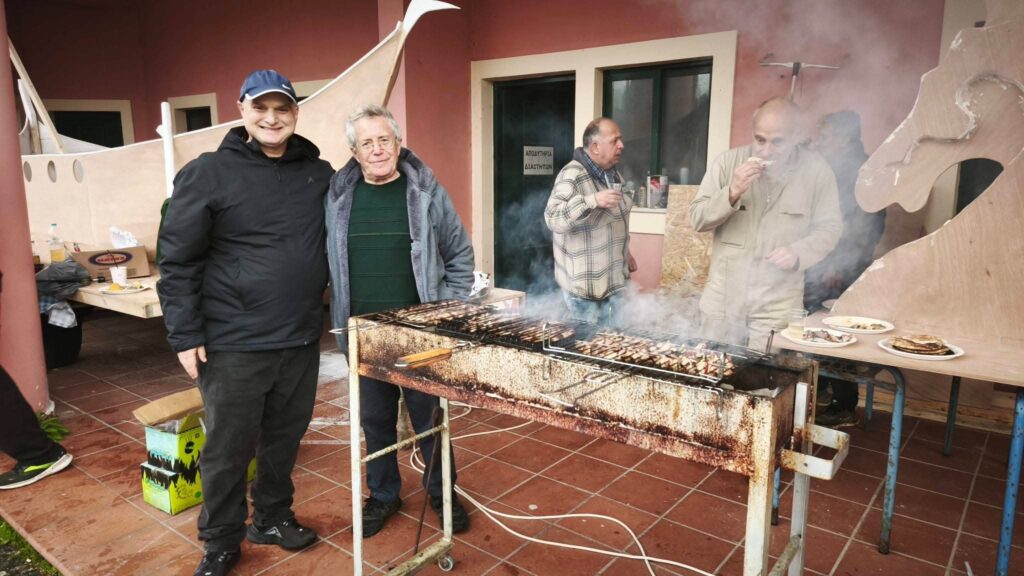 Μια μικρή αυθόρμητη ανάπαυλα από τις πυρετώδεις εργασίες κατασκευής του Άρματος του Πολιτικού Συλλόγου του Πόρου Κεφαλονιάς “Ο Πρόνησος” είχαν τα μέλη του τιμώντας τη γιορτή της Τσικνοπέμπτης στο χώρο του Γηπέδου των Τζαννάτων!