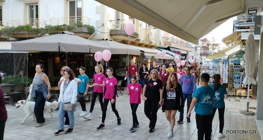 Στο πνεύμα της ευαισθητοποίησης σχετικά με τον καρκίνο του μαστού και με έμφαση στην πρόληψη και την έγκαιρη διάγνωση γυναίκες όλων των ηλικιών, άντρες και παιδιά έδωσαν δυναμικό παρών κρατώντας ροζ μπαλόνια στα χέρια περπάτησαν από τη Γέφυρα Δεβοσέτου, διέσχισαν το Λιθόστρωτο και τερμάτησαν στον πεζόδρομο της οδού Βαλλιάνου έξω από το κτίριο της Περιφερειακής Ενότητας Κεφαλληνίας.