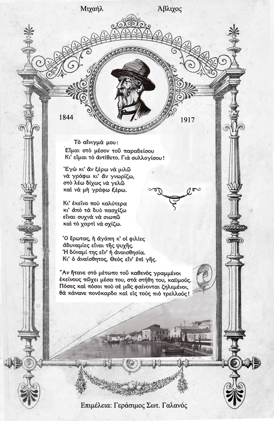 Ο Μικέλης (Μιχαήλ) Άβλιχος γεννήθηκε στις 18 Μαρτίου του 1844 στο Ληξούρι από εύπορη και αριστοκρατική οικογένεια. Διδάχθηκε τα πρώτα γράμματα στο Πετρίτσειο Λύκειο του Ληξουρίου και αργότερα σπούδασε φιλολογία στη Βέρνη της Ελβετίας. Κατά την εκεί παραμονή του επηρεάστηκε αποφασιστικά από τα επαναστατικά ρεύματα που συντάραζαν εκείνη την περίοδο την Ευρώπη και ιδιαίτερα από την προσωπικότητα και τις ιδέες του Ρώσου αναρχικού Μιχαήλ Μπακούνιν.