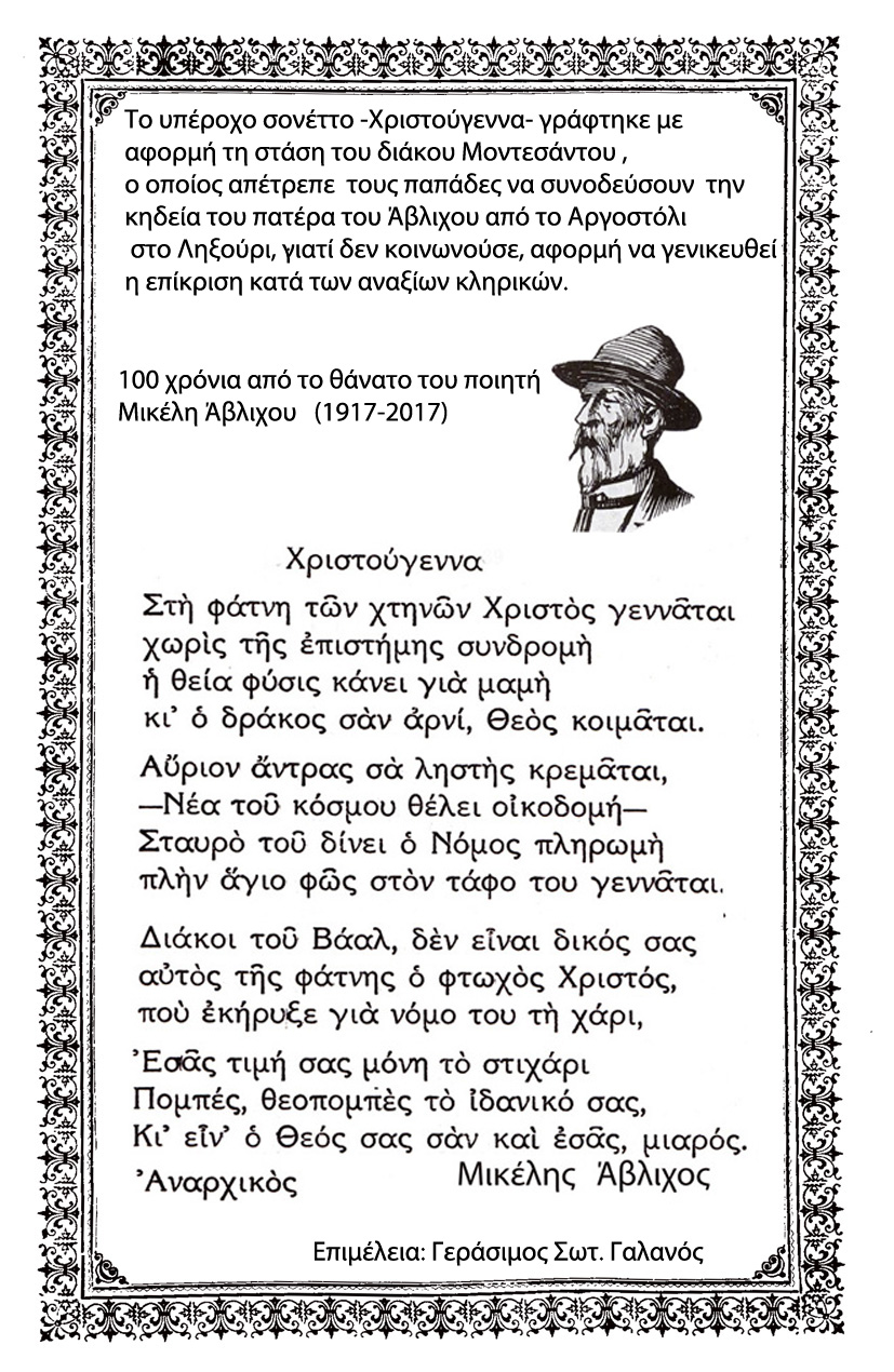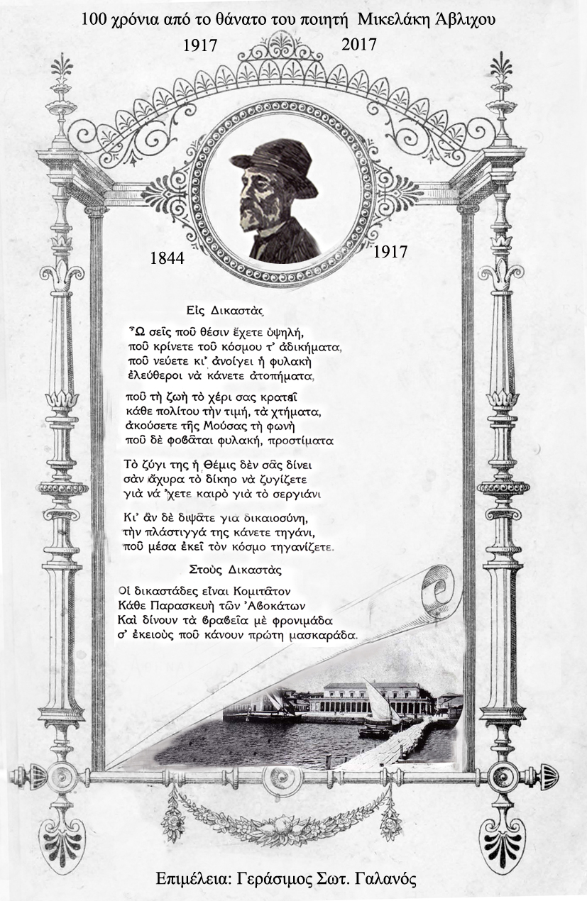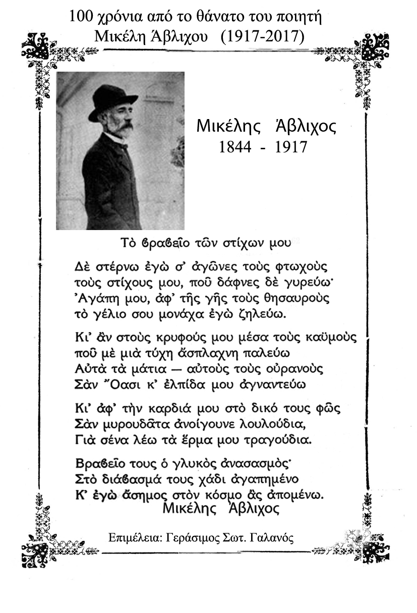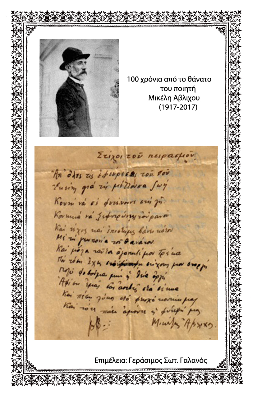 Ο Μικέλης Άβλιχος πέθανε στο Αργοστόλι στις 28 Νοεμβρίου του 1917, σε ηλικία 73 ετών.