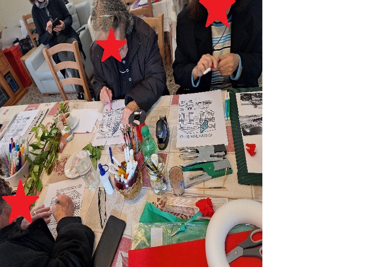 Επίσης, αφού επεξεργαστήκαμε σχετικές εικόνες, τις έκαναν κολάζ και έγραψαν λέξεις σχετικές με το Πολυτεχνείο. Αφού έκοψαν από το κήπο της Δομής φύλλα Δάφνης και κλαριά , έφτιαξαν στεφάνι καθώς επίσης γαρύφαλλο από γκοφρέ χαρτί.  Ενώ κατά τη διάρκεια της δράσης άκουγαν-τραγουδούσαν τραγούδια, που γράφτηκαν( όπως το Γελαστό Παιδί, το Ακορντεόν, ο Δρόμος) για το Πολυτεχνείο παίζοντας « βρες το συνθέτη- τραγουδιστή» .