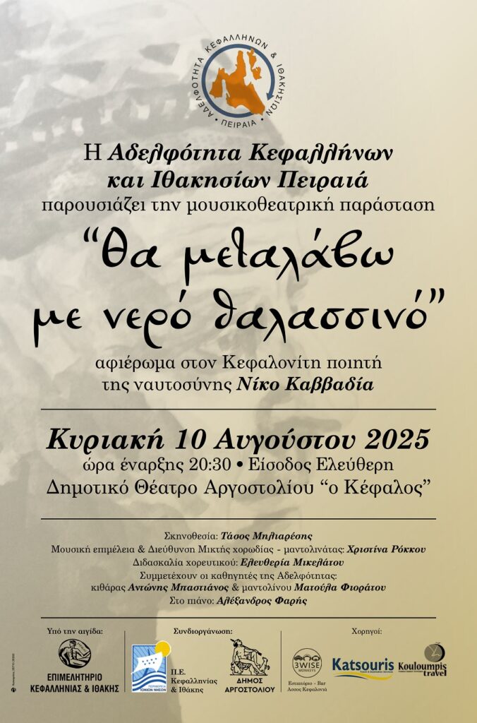 Μουσικοθεατρική παράσταση «Θα μεταλάβω με νερό θαλασσινό» αφιερωμένη στον Κεφαλονίτη ποιητή της ναυτοσύνης Νίκο Καββαδία