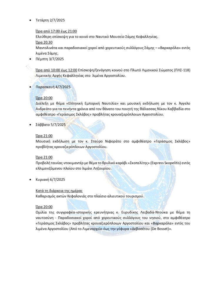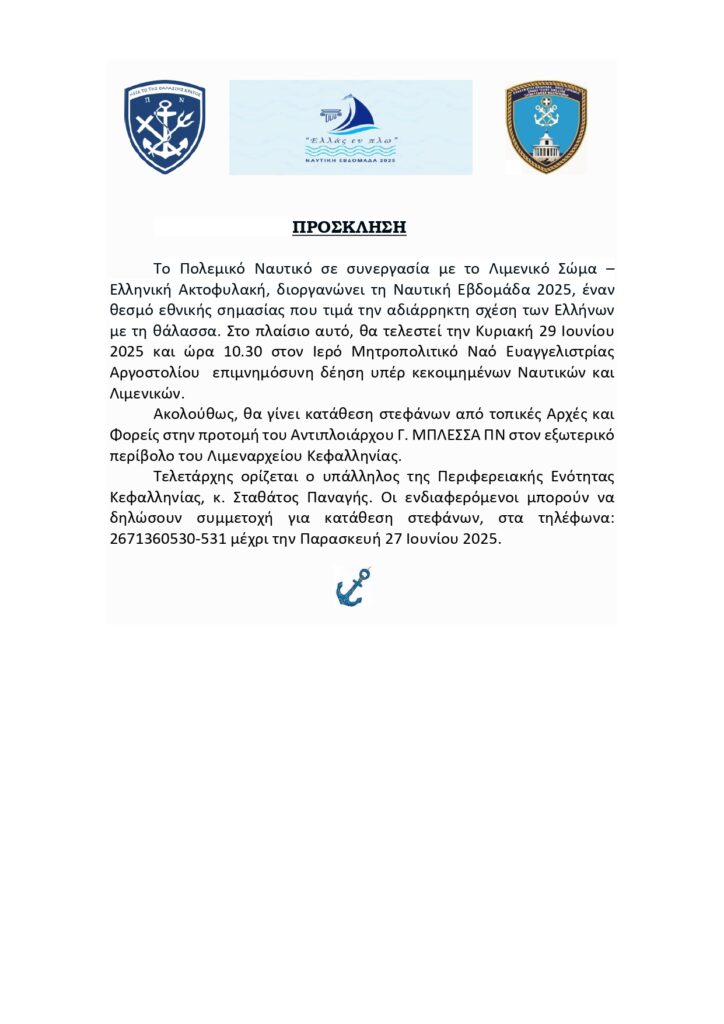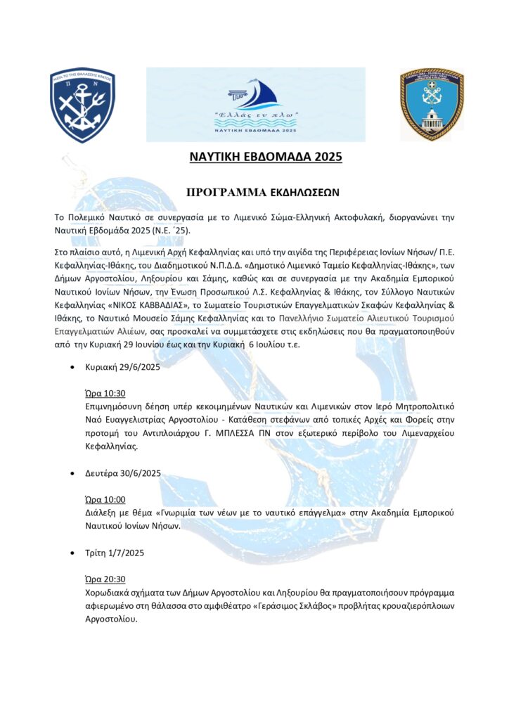 Ναυτική Εβδομάδα 2025-Το πρόγραμμα των εκδηλώσεων