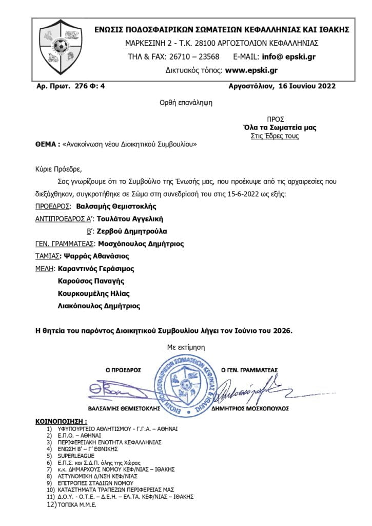 HomeΑθλητισμόςΞανά Πρόεδρος της Ένωσης Ποδοσφαιρικών Σωματείων Κεφαλονιάς Ιθάκης ο Θεμιστοκλής Βαλσαμής