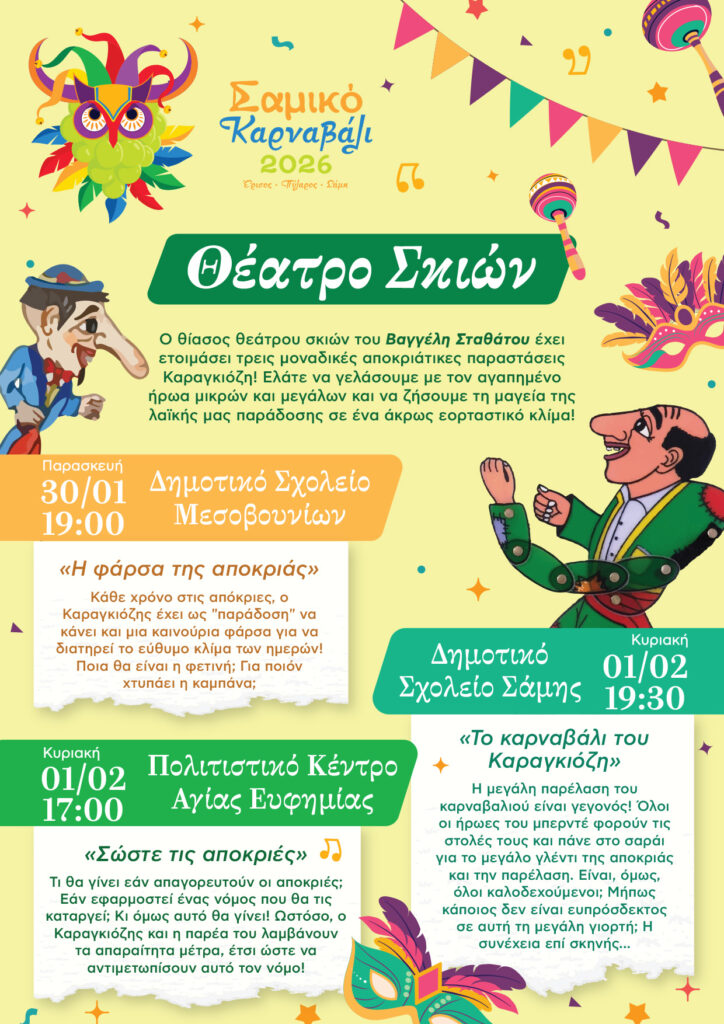 Ετοιμαστείτε λοιπόν για γέλιο, χορό και ατελείωτη διασκέδαση! Το Σαμικό Καρναβάλι ξεκινά!