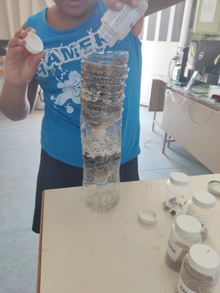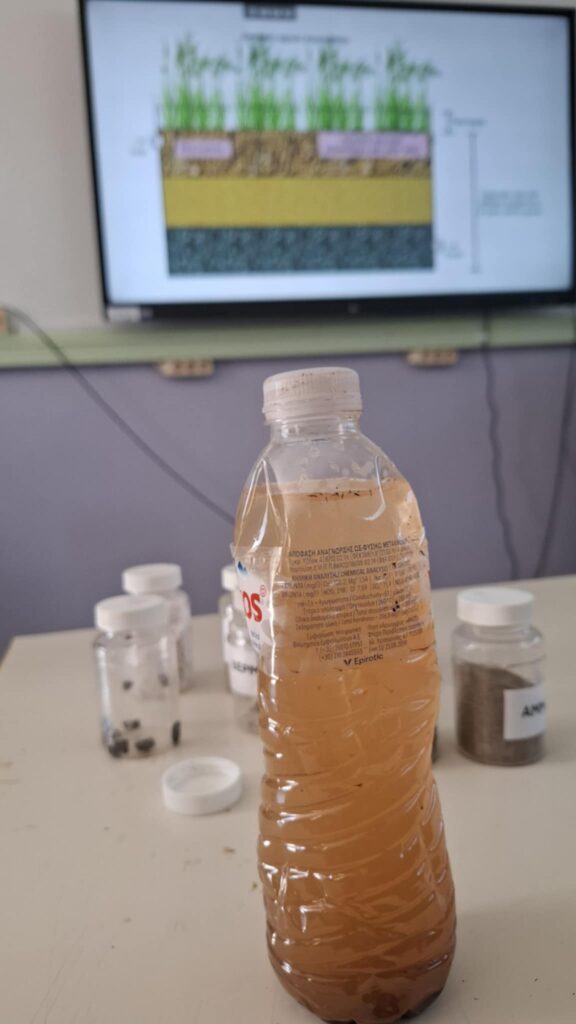 Σε μία από τις πρώτες μας δράσεις μάθαμε για τους τους τεχνητούς υγρότοπους. Τα παιδιά είχαν την ευκαιρία να μάθουν μέσα από τη δημιουργία του μικρού δικού τους συστήματος και τον τρόπο με τον οποίο μπορούν οι τεχνητοί υγρότοποι στο καθαρισμό του νερού. Η δράση δηλαδή συνδύασε θεωρητική παρουσίαση με βιωματικές δραστηριότητες, δίνοντας στα παιδιά τη δυνατότητα να μάθουν μέσα από το παιχνίδι και την πρακτική εμπειρία.