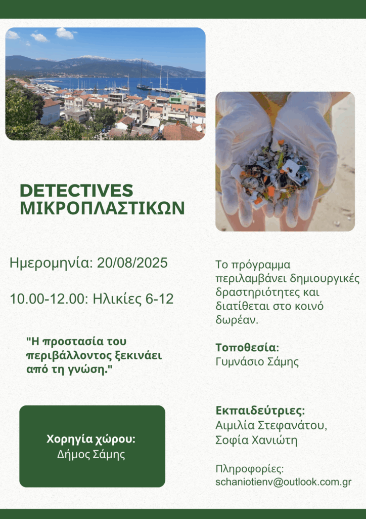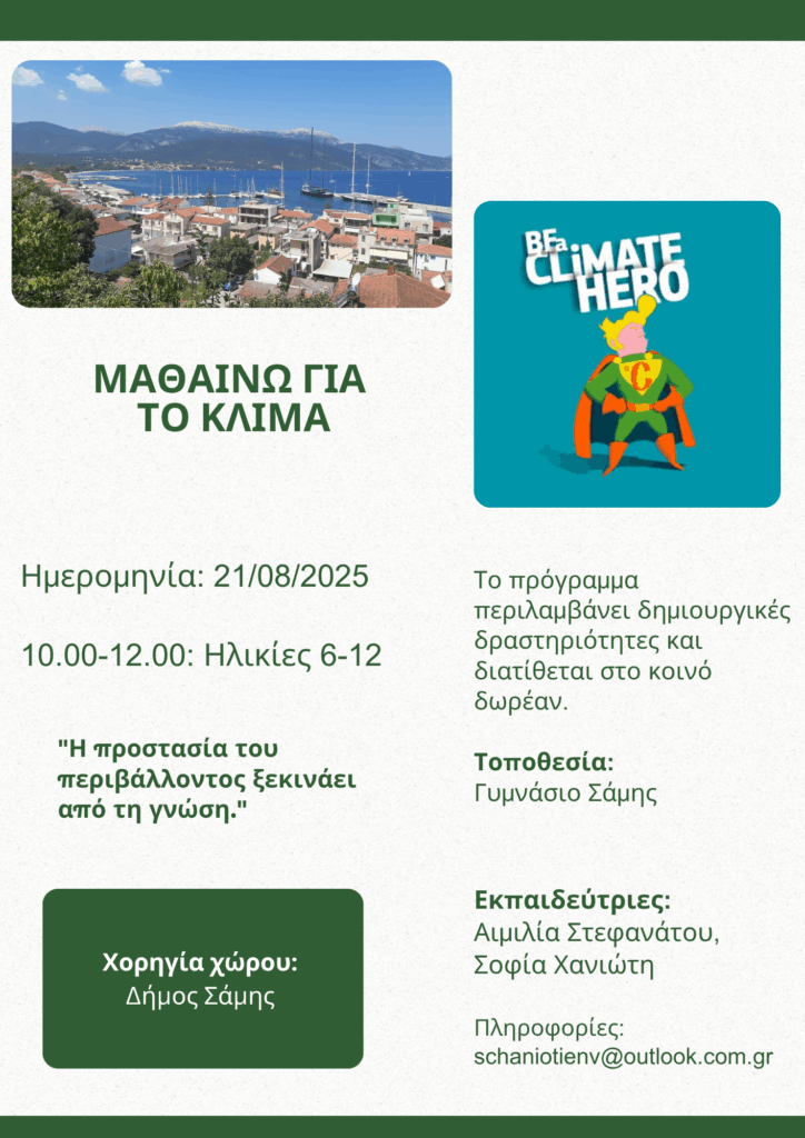Με ιδιαίτερο ενθουσιασμό ξεκίνησε στις 18 Αυγούστου το Πρόγραμμα Περιβαλλοντικής Εκπαίδευσης στη Σάμη, με τη στήριξη του Ionian Environment Foundation και τη συνεργασία του Πολιτιστικού Συλλόγου Σάμης «Αιγιαλός». Οι πρώτες δράσεις πραγματοποιήθηκαν στο Γυμνάσιο Σάμης, με εκπαιδεύτριες τις Έμιλυ Στεφανάτου και Σοφία Χανιώτη.