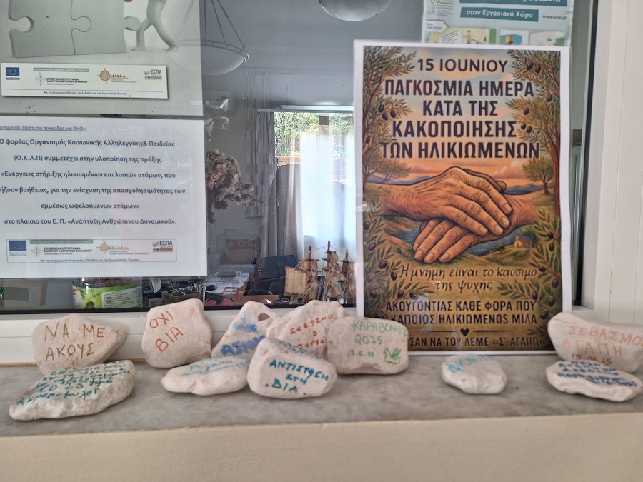 1. Παγκόσμια Ημέρα κατά της κακοποίησης των ηλικιωμένων (15 Ιουνίου) “Πετραδάκια Μνήμης και Δύναμης” – Δράση Ευαισθητοποίησης.