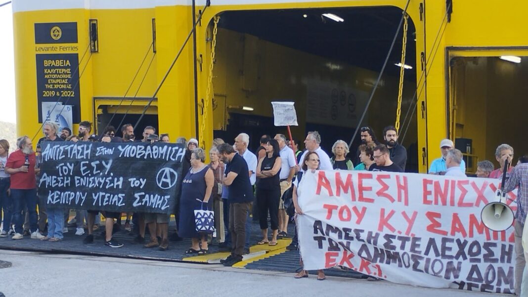 Μαζική ήταν και σήμερα το πρωί στο λιμάνι της Σάμης η συγκέντρωση διαμαρτυρίας πολιτών και φορέων ολόκληρης της ανατολικής Κεφαλλονιάς, οι οποίοι διατράνωσαν την πλήρη αντίθεση της τοπικής κοινωνίας στην περαιτέρω απαξίωση του Κέντρου Υγείας Σάμης.